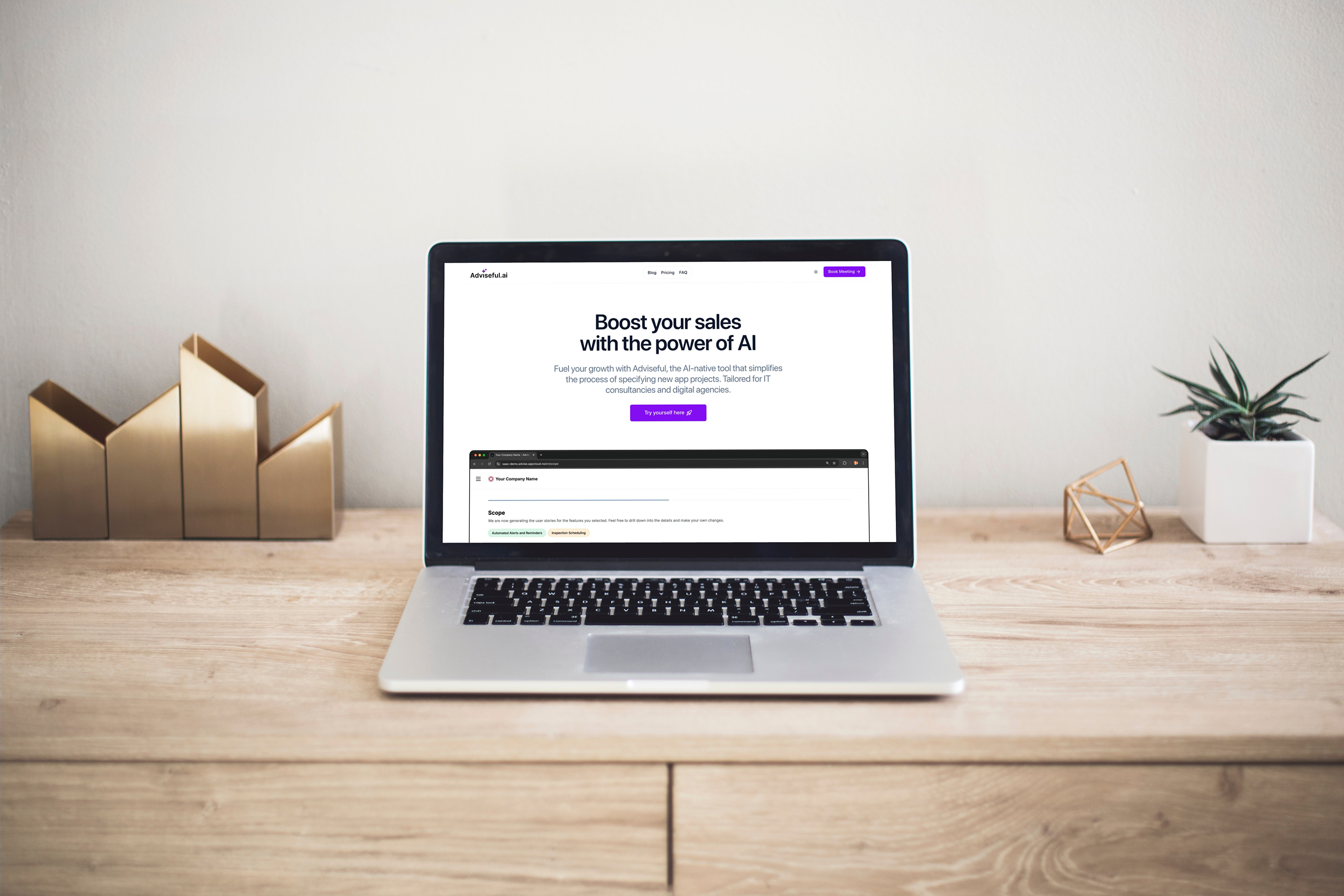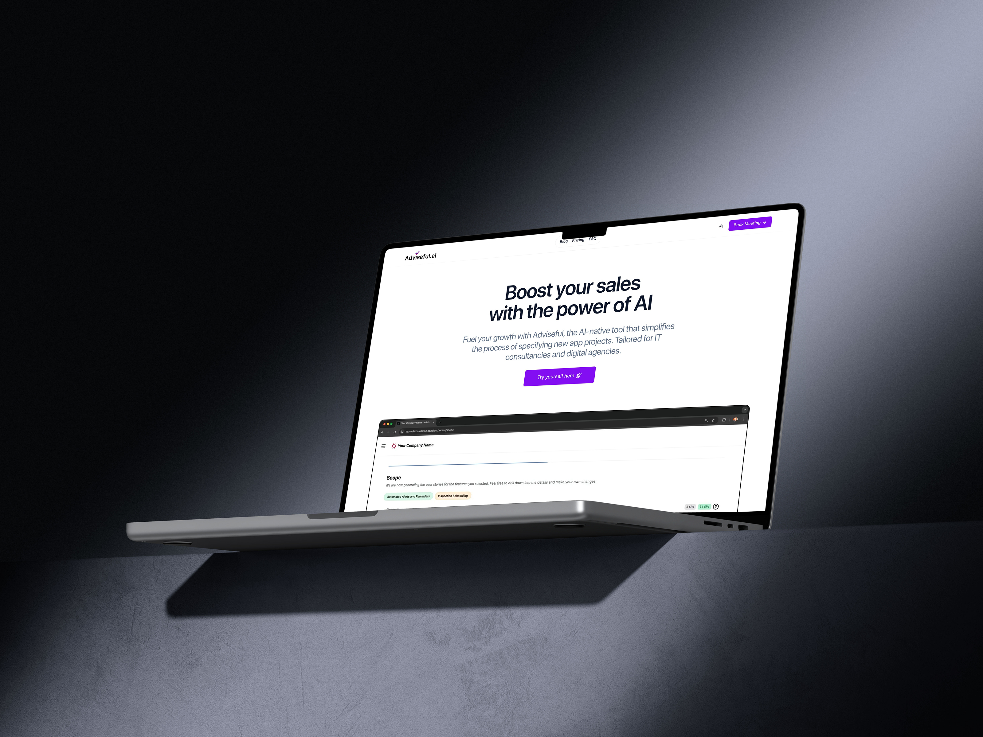 Adviseful.ai er designet med moderne IT bedrifter i tankene. Løsningen kan fullstendig tilpasses med bedriftens logo og farger, noe som sikrer en konsistent merkevareopplevelse. Verktøyet er også enkelt å integrere på eksisterende nettsider, og gir et kraftig tilskudd til enhver IT bedrifts digitale verktøykasse.