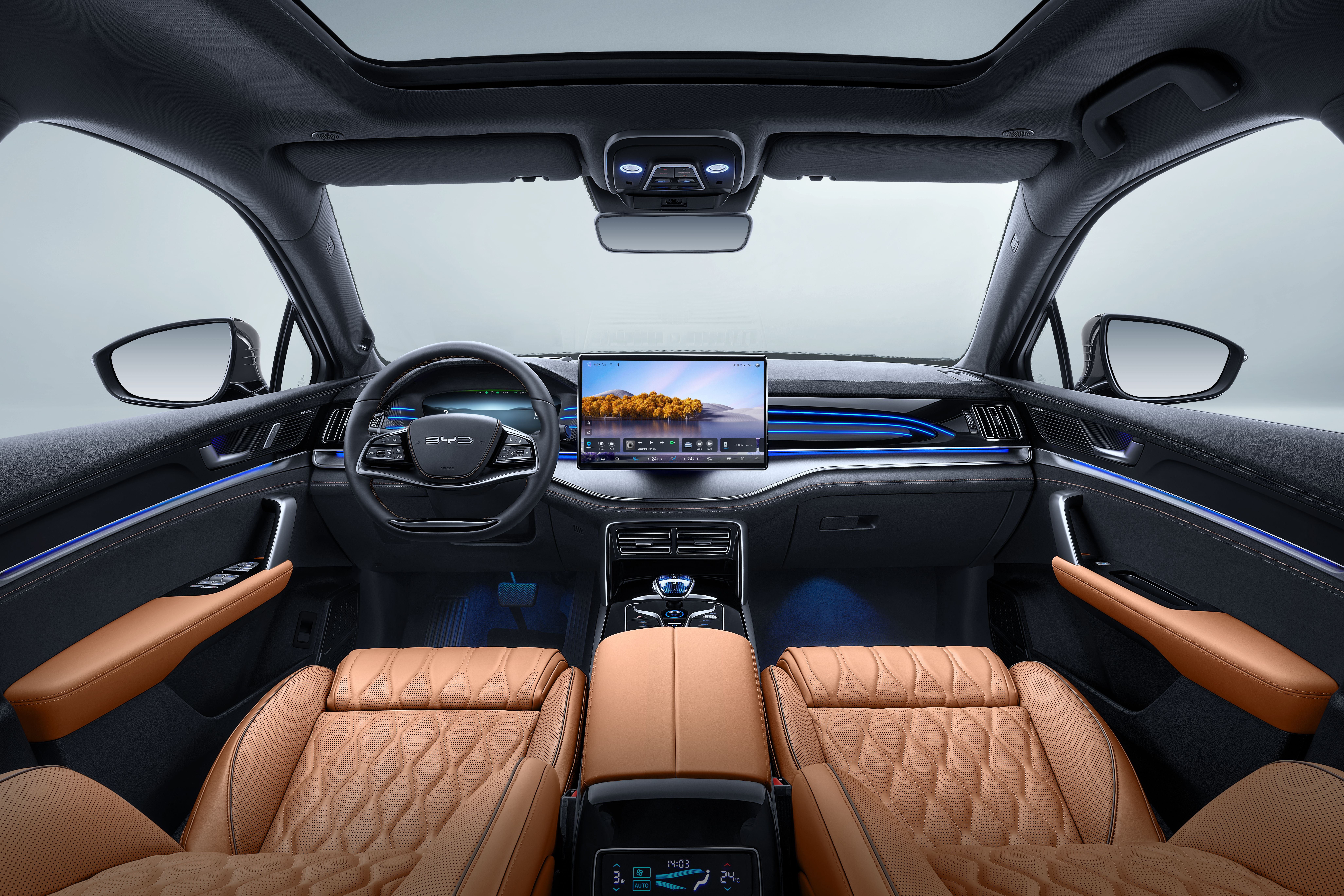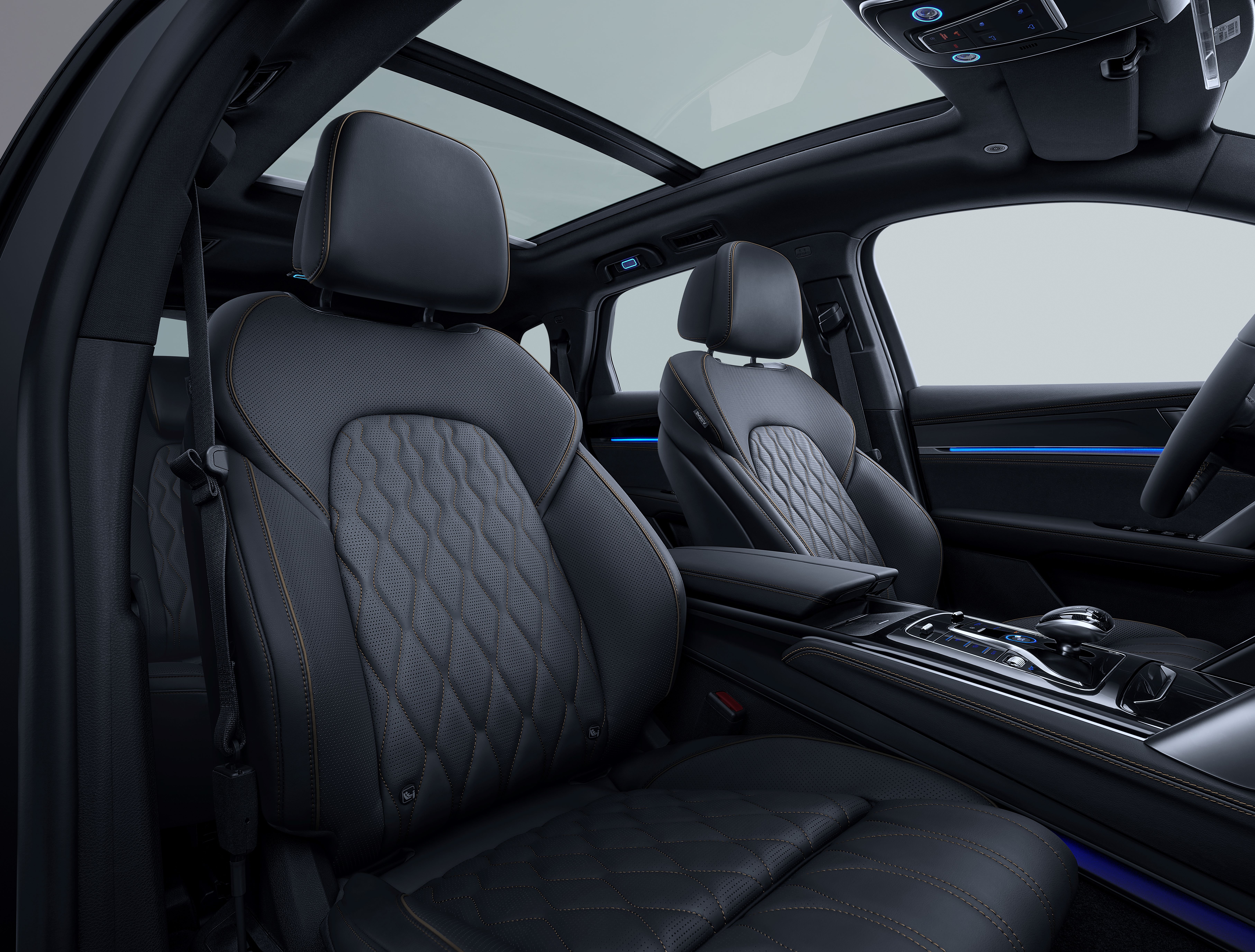 Panoramasoltaket slipper inn naturlig lys, og en elektrisk solskjerm beskytter mot sterkt sollys. Luftkvaliteten ivaretas av et PM2.5-interiørfilter og et aktivt luftrensesystem som sikrer frisk ventilasjon.