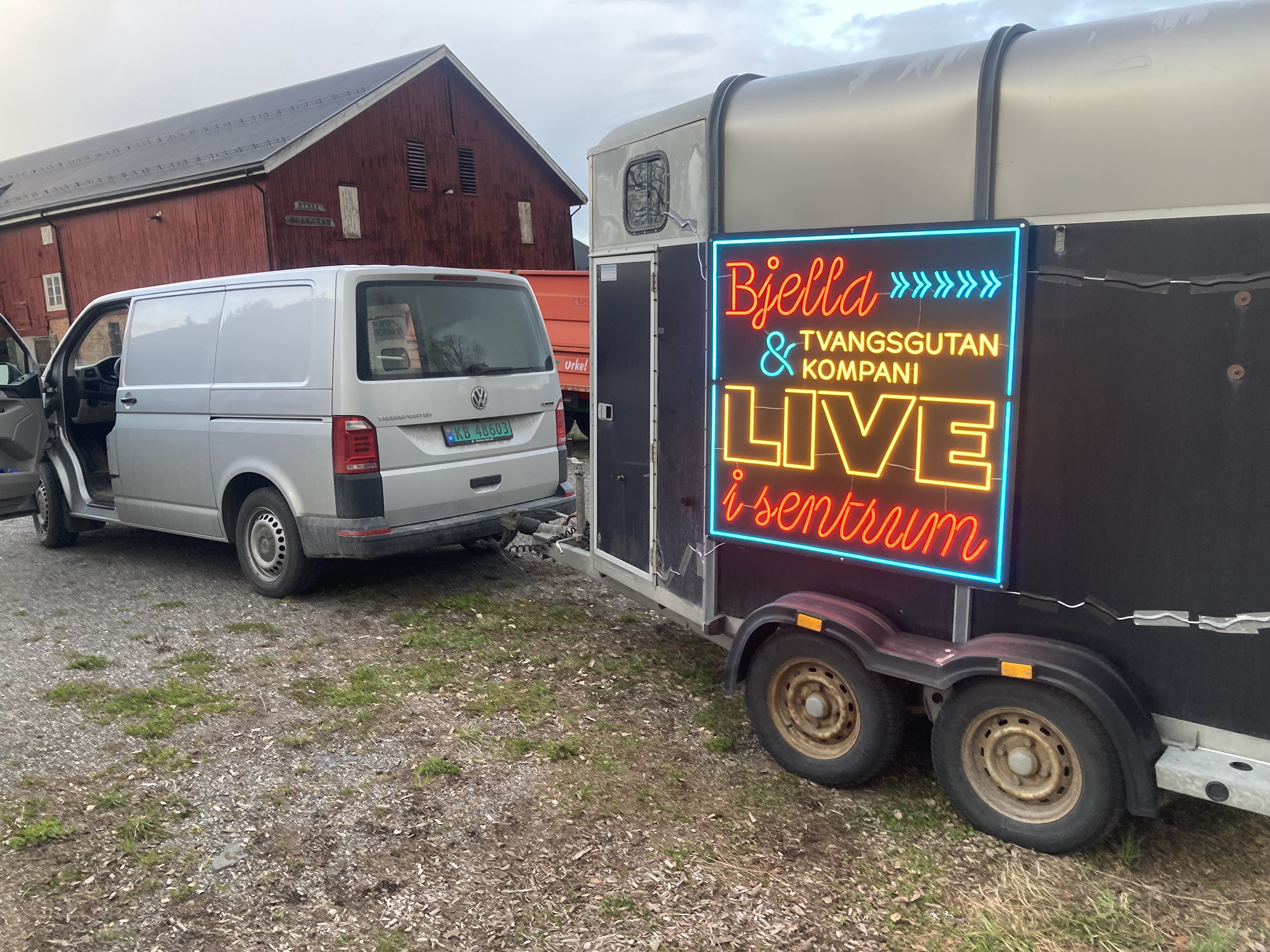 En hestehenger pryder coveret på Live i sentrum. Bjella har i alle år kjørt bandutstyret i hengeren. Da livet på veien starta for ålingen for femten år siden, vaska småbrukeren og hestebonden hestehengeren rein, og rulla i vei. Siden har det blitt hundrevis av konserter og hundrevis av mil (band og mannskap sitter ikke i hengeren, presiserer han!).