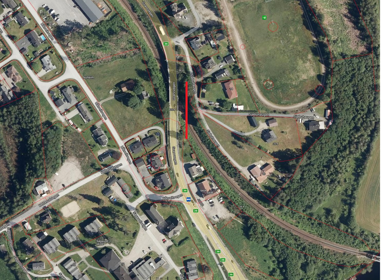 Brua som skal monterast, vil gå over jernbanen, og anleggsområdet vil primært vera mellom Gvarvkrysset og kryssa Sjøbuhaugen rett nord for riksvegbrua.