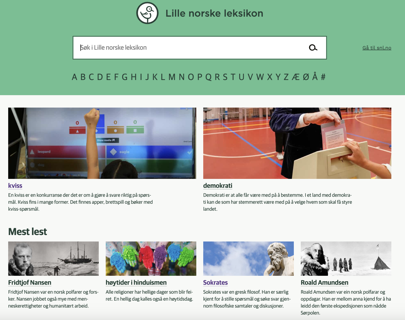 Store norske leksikon (SNL) er et gratis og fritt tilgjengelig oppslagsverk der innholdet er skrevet av fagfolk og bygget på vitenskap.