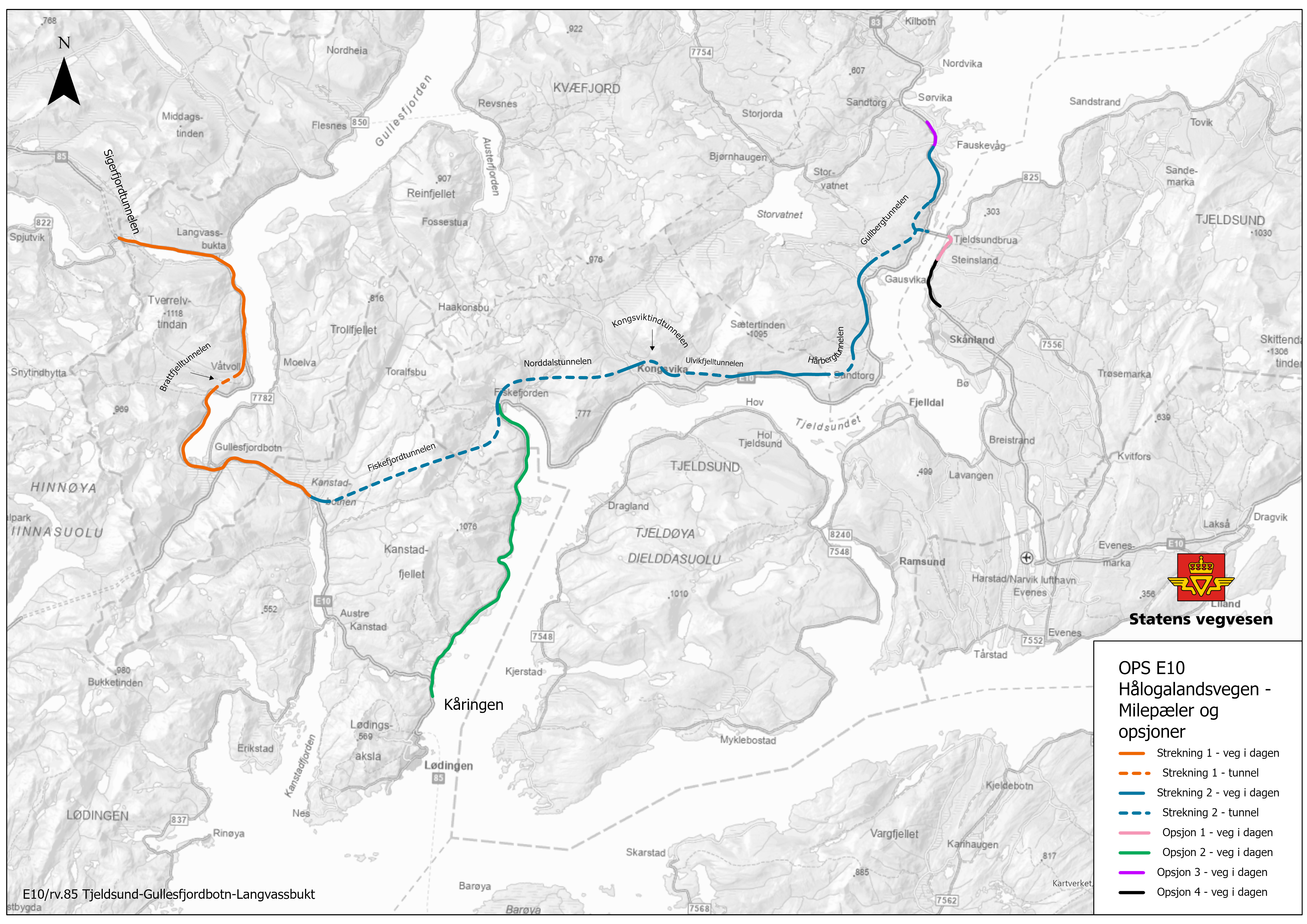 OPS-prosjektet E10/rv.85 Tjeldsund–Gullesfjordbotn–Langvassbukt skal knytte Harstad, Evenes, Lødingen og Sortland bedre sammen. Utbyggingen skal øke trafikksikkerheten og bedre fremkommeligheten ved å redusere kjøretiden mellom Sortland og Harstad med ca. 40 minutter.