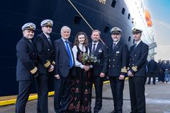 Viele Einwohner der Gemeinde waren nach Skansekaia gekommen, um der Taufe des Küstenkreuzfahrtschiffs beizuwohnen.