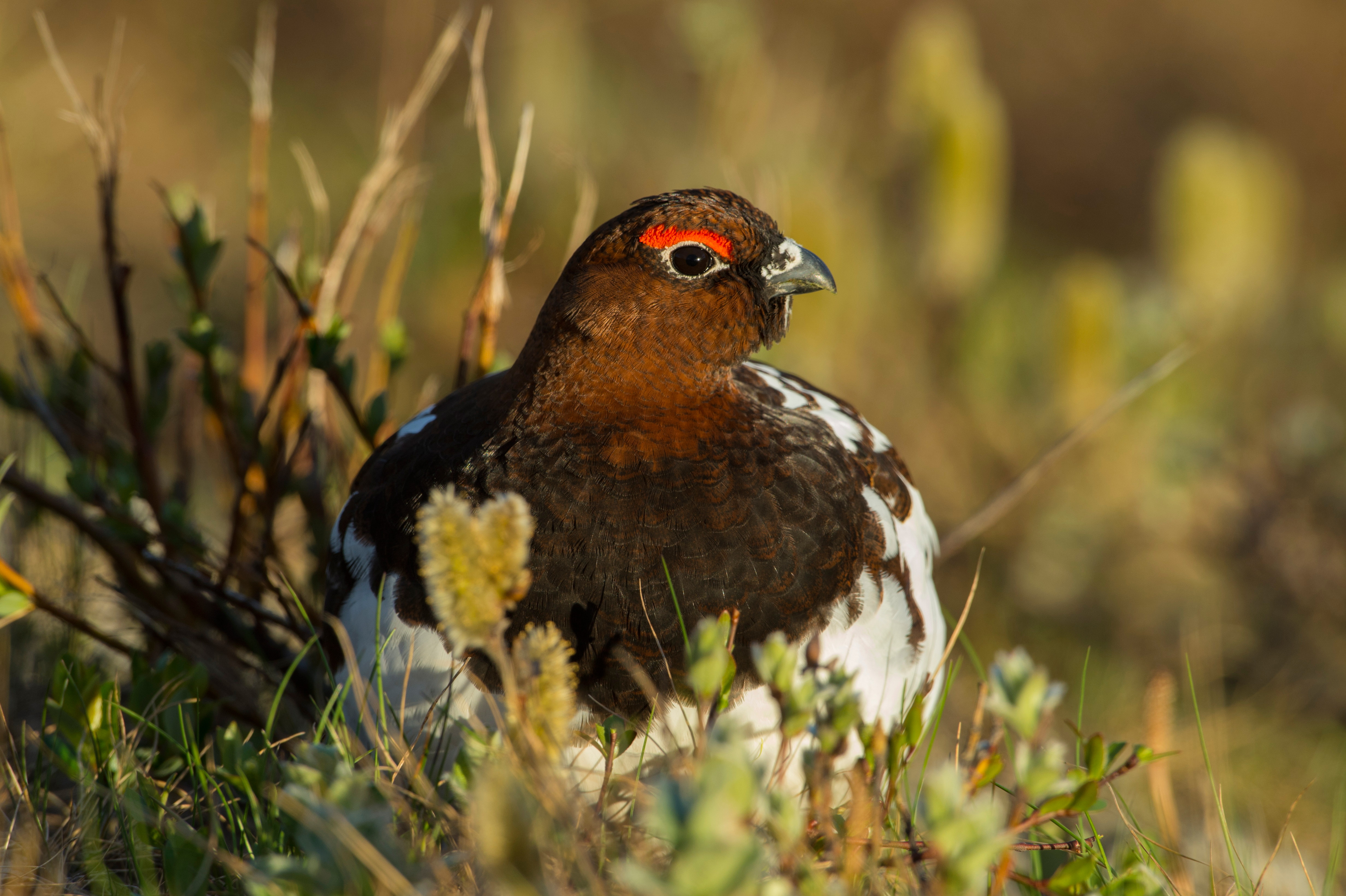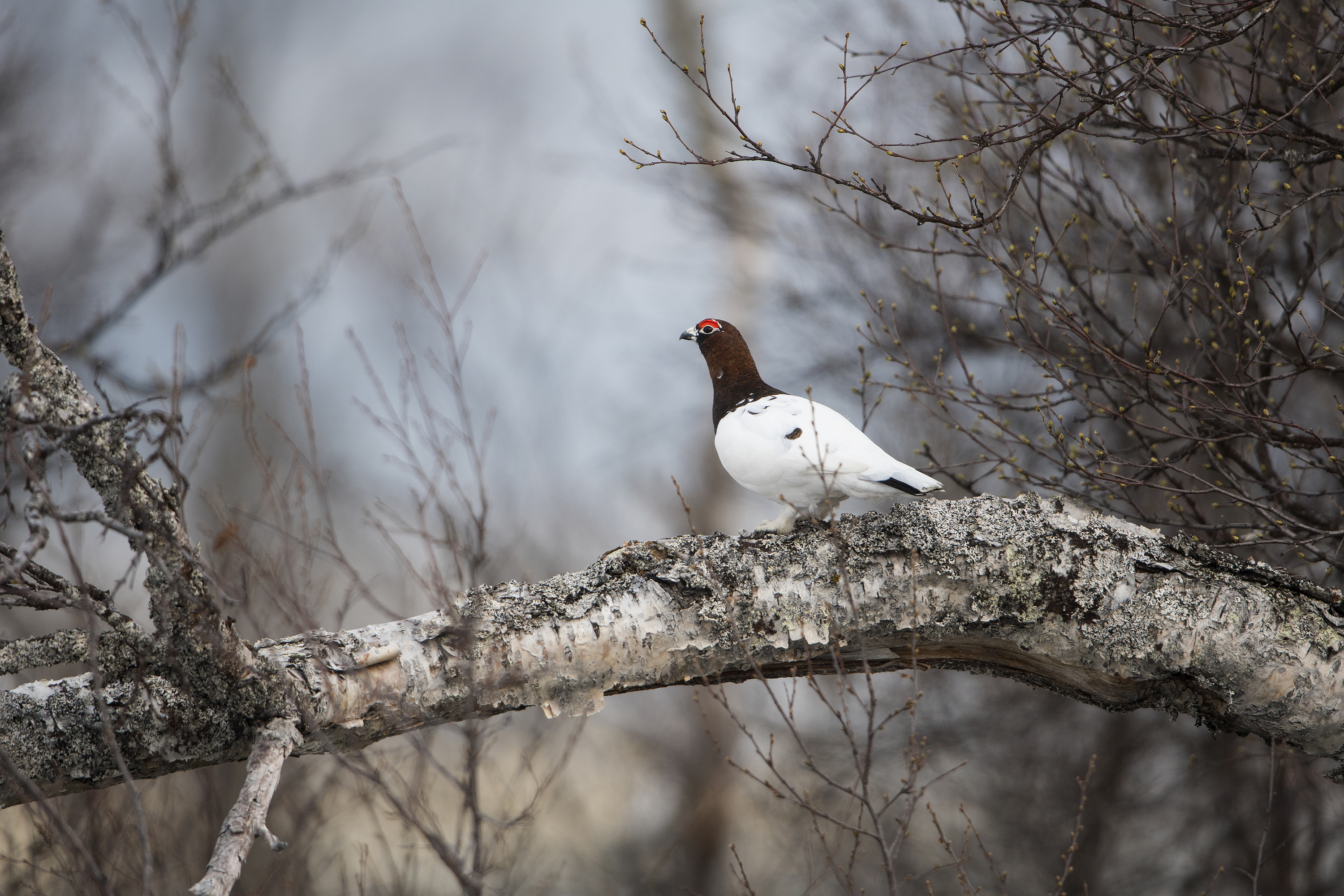 Rovfugl kan stadig oftere jakte veldig synlige, kritthvite ryper på snøfattig, mørk bakke.