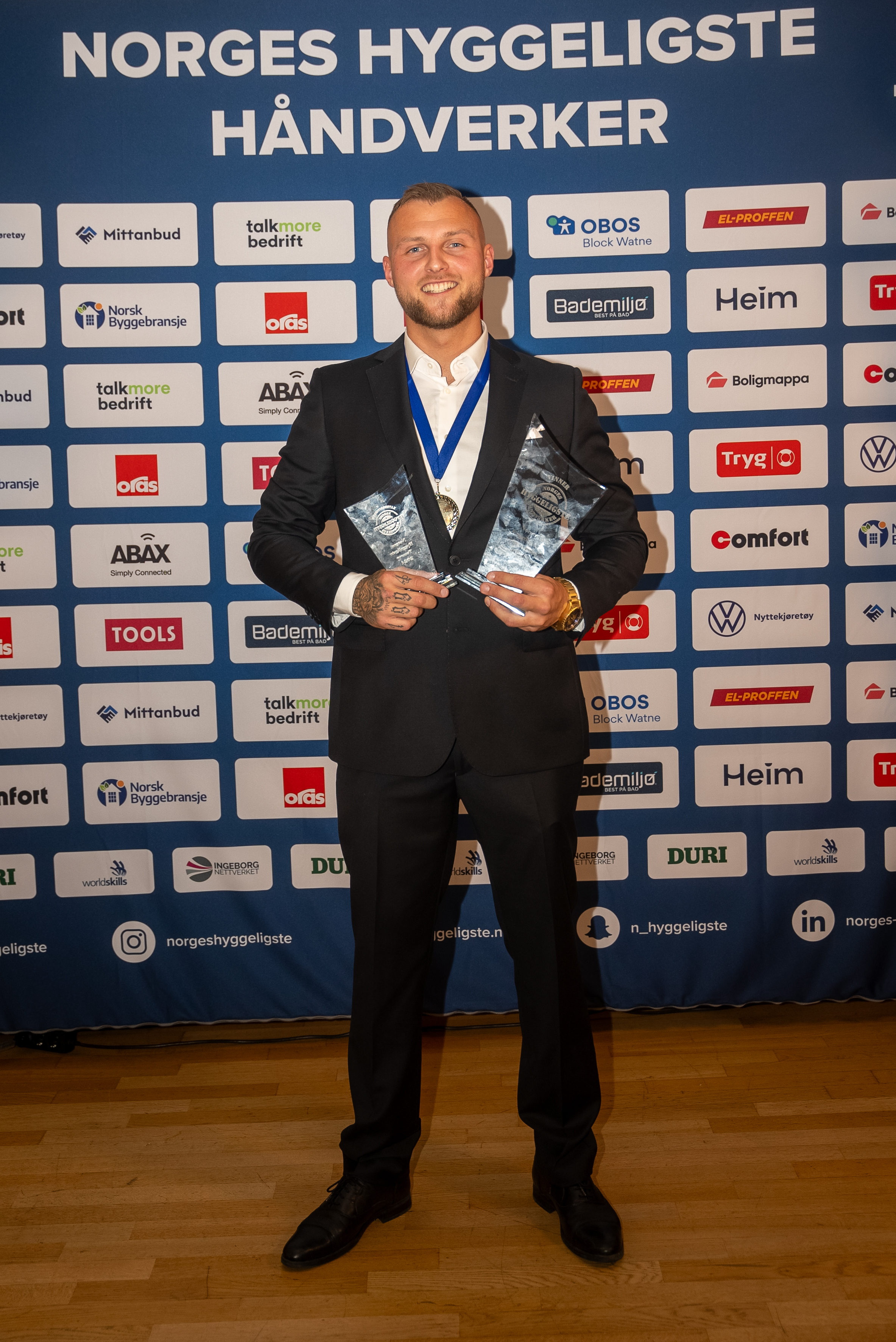 Lørdag 23. august var det endelig duket for håndverksbransjens store festkveld, da Norges Hyggeligste Håndverker ble arrangert på Gamle Logen i Oslo. Med 25 sterke finalister fordelt på åtte kategorier, lå alt til rette for en spennende kåring. Kvelden endte med at en stolt og rørt gjeng kunne ta imot sine priser fra scenen. Blant disse kategoriene var det Norges hyggeligste snekker, og i år var det Hilmar Iversen som vant den gjeve tittelen! En stolt og glad vinner mottok prisen.