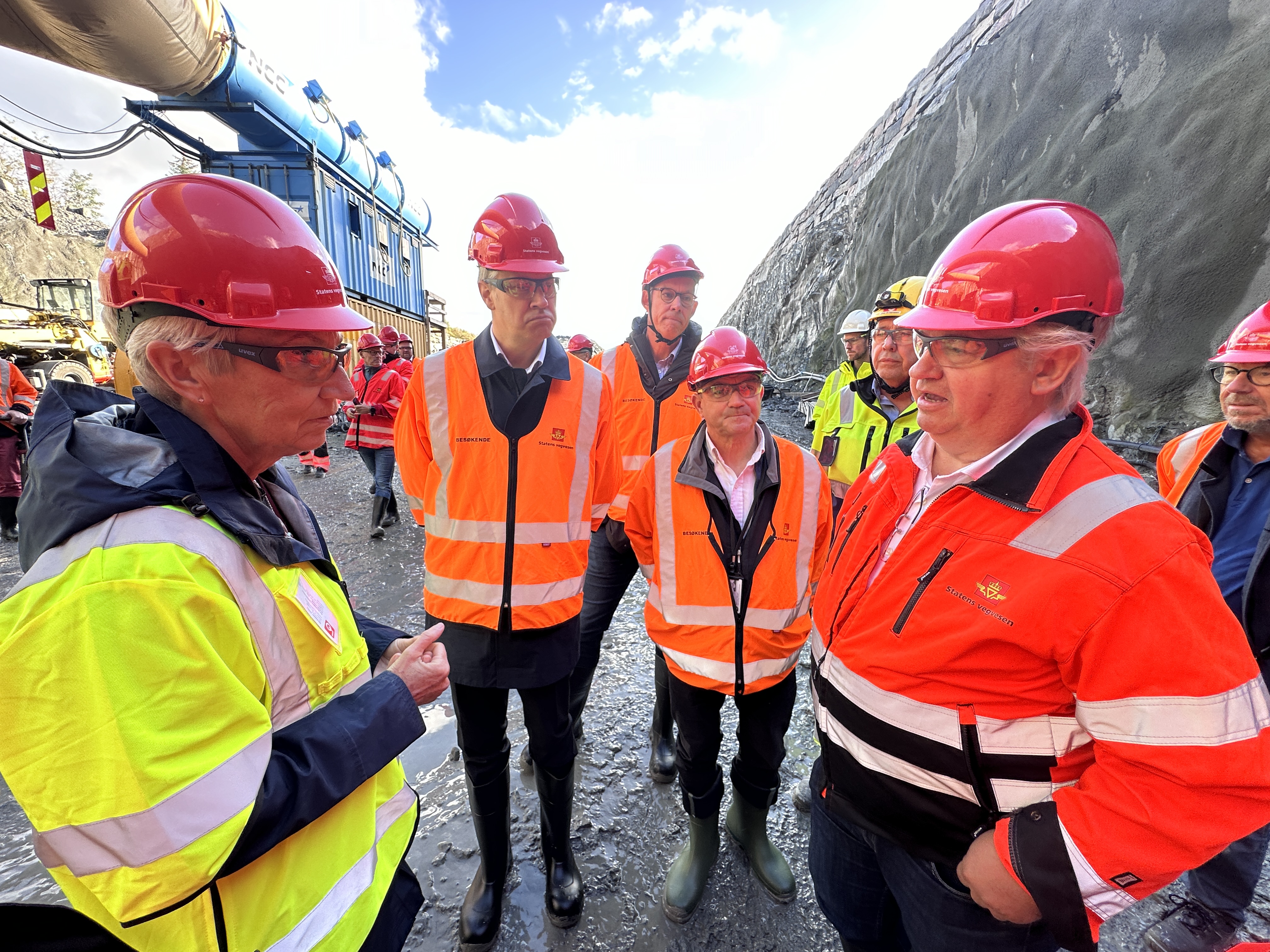 Fredag besøkte LO-leder Peggy Hessen og utbyggingsdirektør Kjell Inge Davik vegprosjektet E136 Breivika-Lerstad i Ålesund sammen med samferdselsminister Jon-Ivar Nygård (Ap). NCC er hovedentreprenør med flere underentreprenører. Det jobber 130 ansatte i vegprosjektet som vil koste om lag 2,5 milliarder kroner.