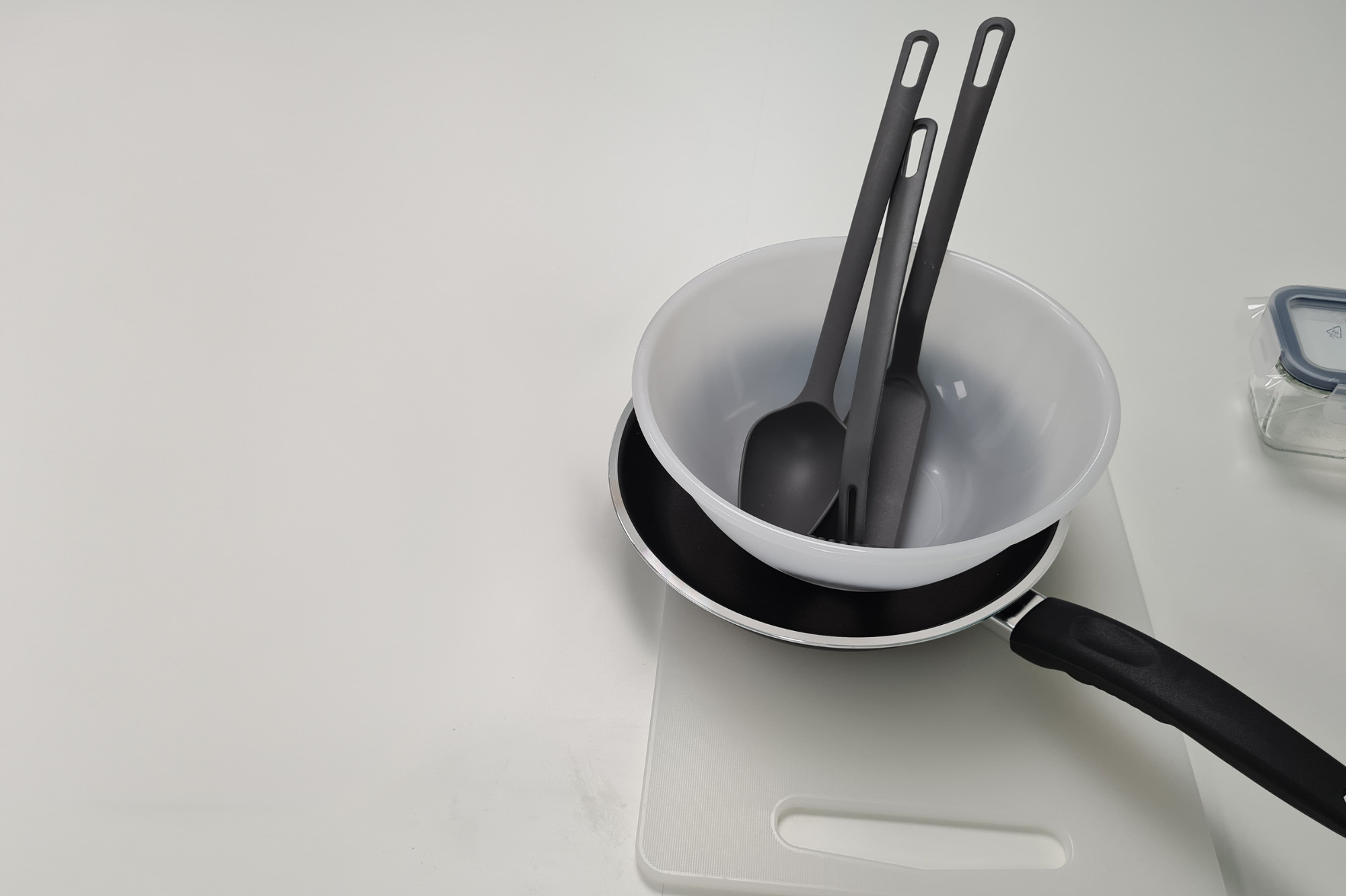‘Maten’ ble tilberedt ved hjelp av enten kjøkkenutstyr som ikke var av plast, nyere kjøkkenutstyr av plast eller eldre kjøkkenutstyr av plast. Det utstyret som ikke var laget av plast, var laget av rustfritt stål og glass, mens utstyret som var laget av plast bestod av skjærebrett, matbeholdere, silikonbelagte kjøkkenredskaper og panner belagt med polytetrafluoreten (PTFE), såkalt slippbelagte panner. Kjøkkenutstyret som ikke var av plast og de nye redskapene av plast, ble kjøpt fra lokale leverandører, mens det eldre kjøkkenutstyret av plast ble hentet fra kjøkkenet.