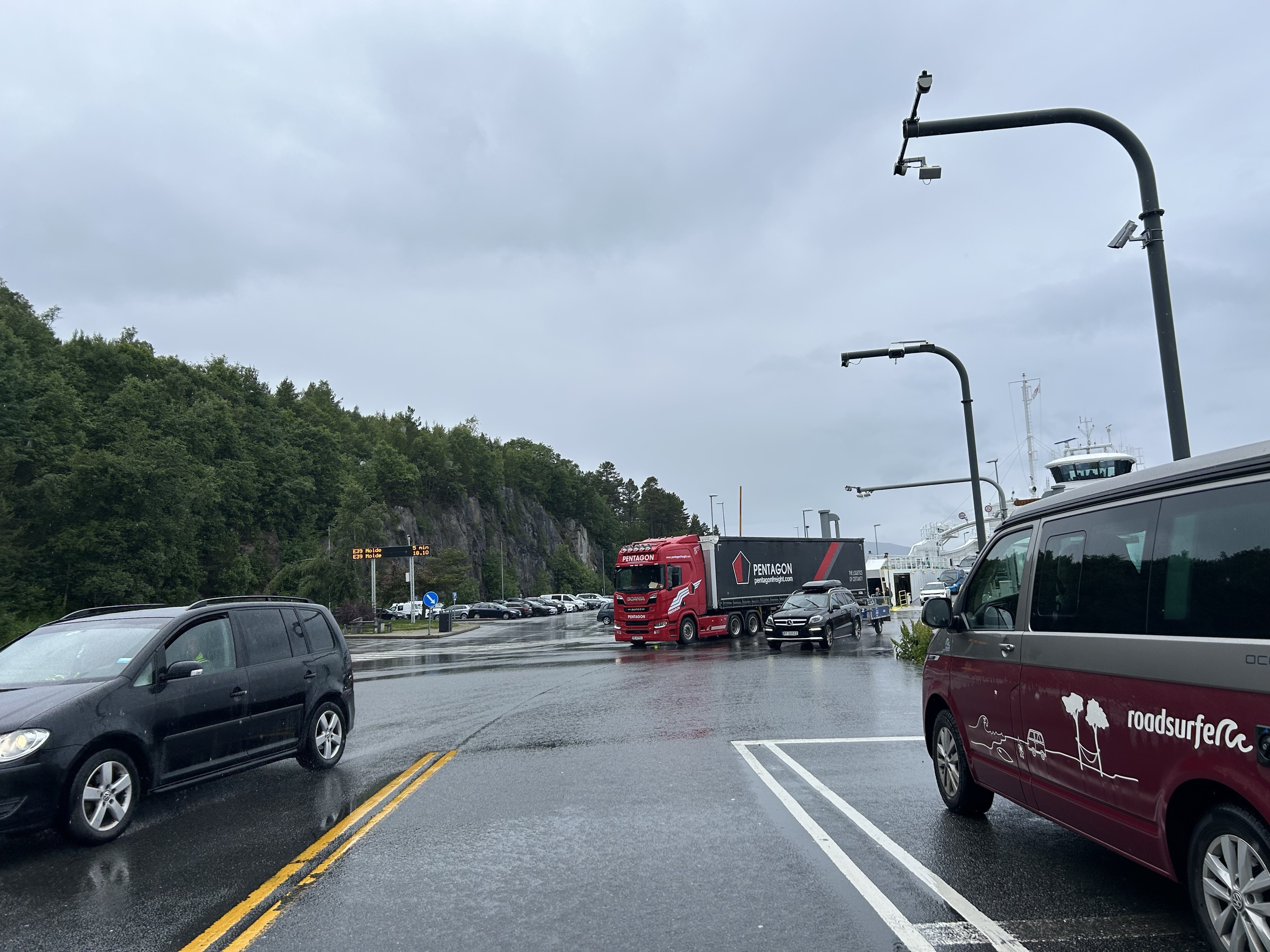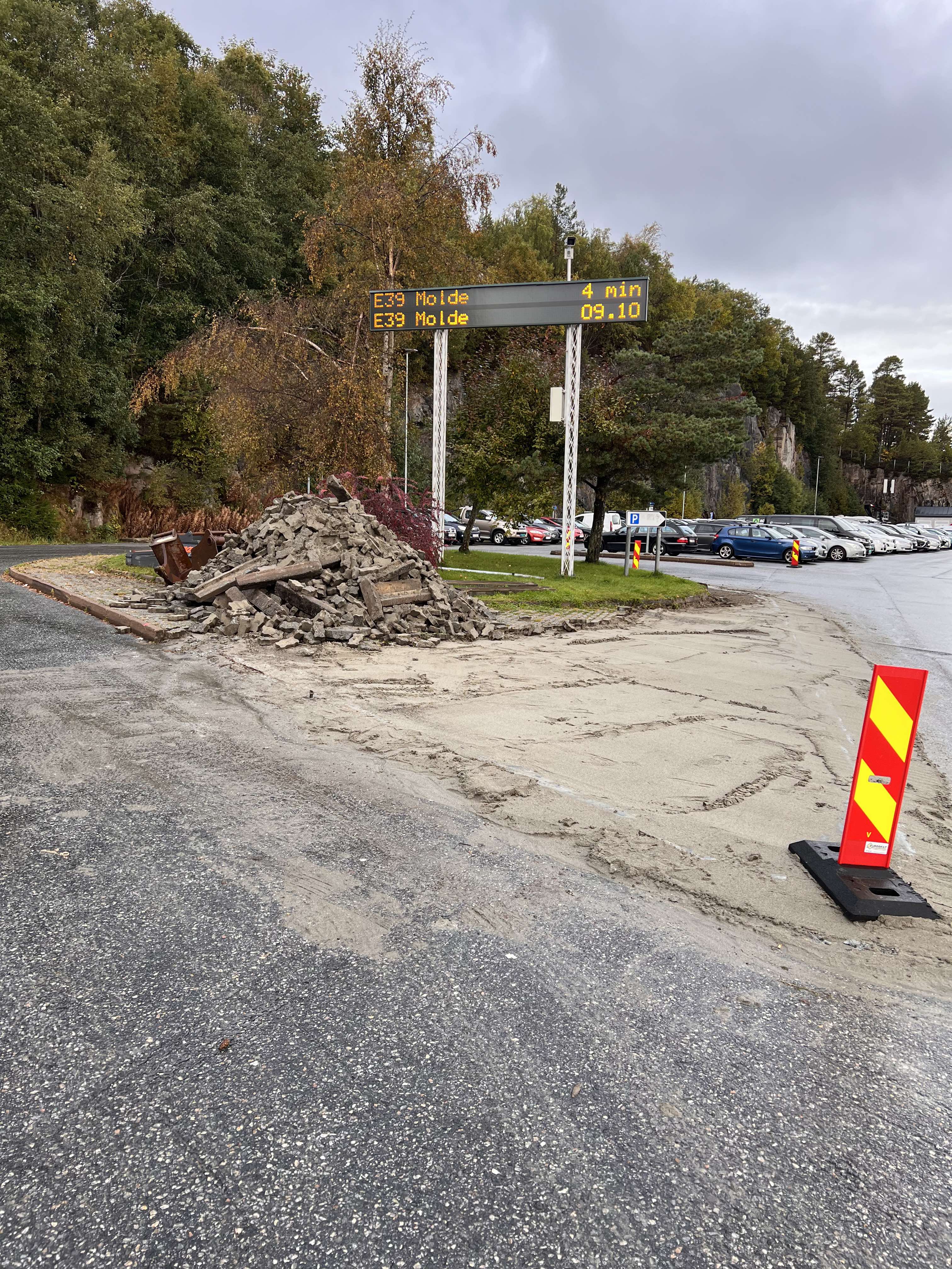 Statens vegvesen er no i gang med strakstiltak på E39 ferjekai. Dei som parkerer og skal ta ferje utan bil bør berekne litt meir tid.