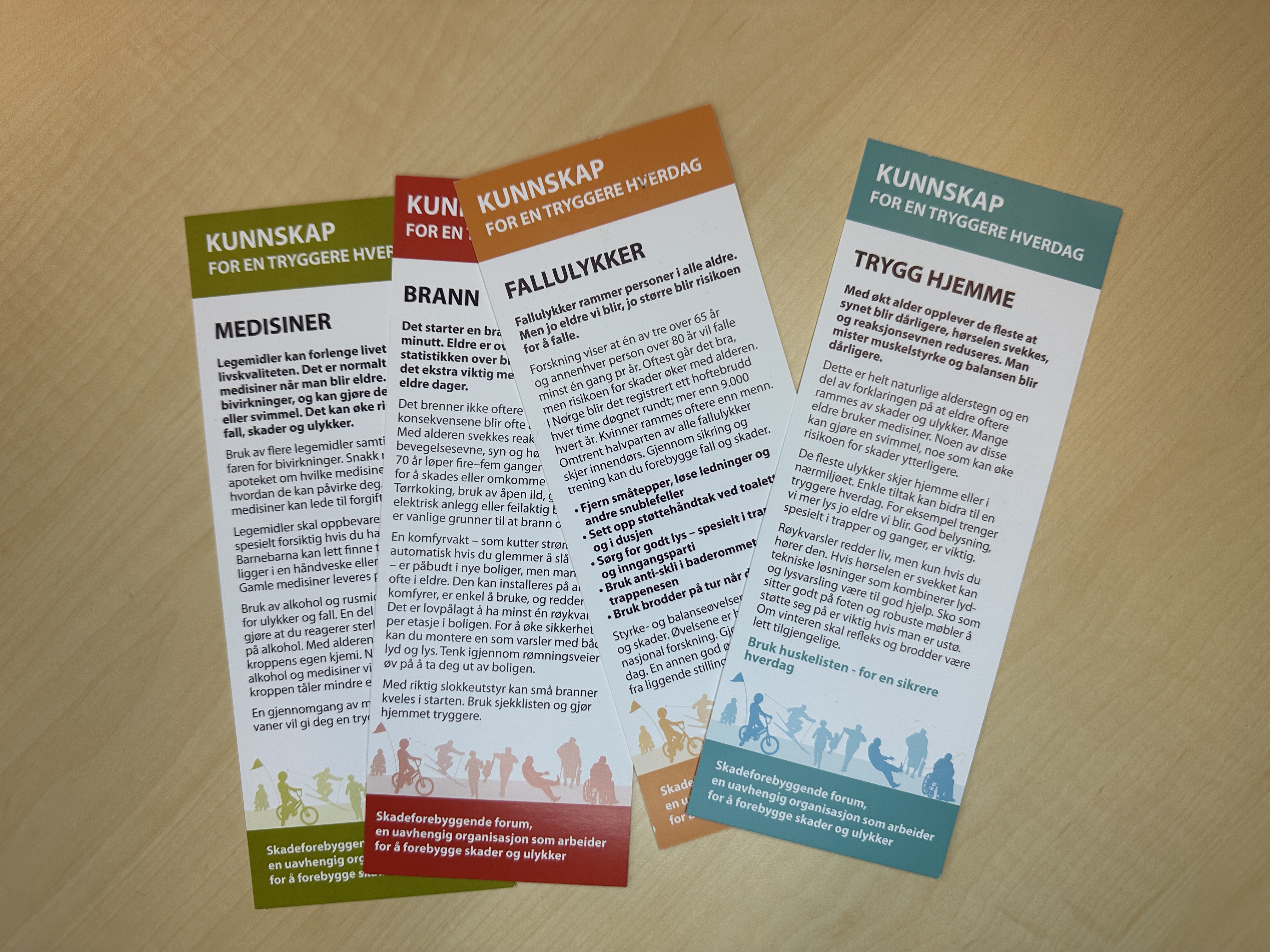 Tipsene er hentet fra ett av fire sikkerhetskort som Skadeforebyggende forum sender ut til kommuner i hele landet. I 2023 og 2024 har vi sendt ut 40 000 sikkerhetskort som deles ut av seniorveiledere, på seniorsentre, på hjemmebesøk, Eldredagen og andre steder man møter på eldre i en kommune.