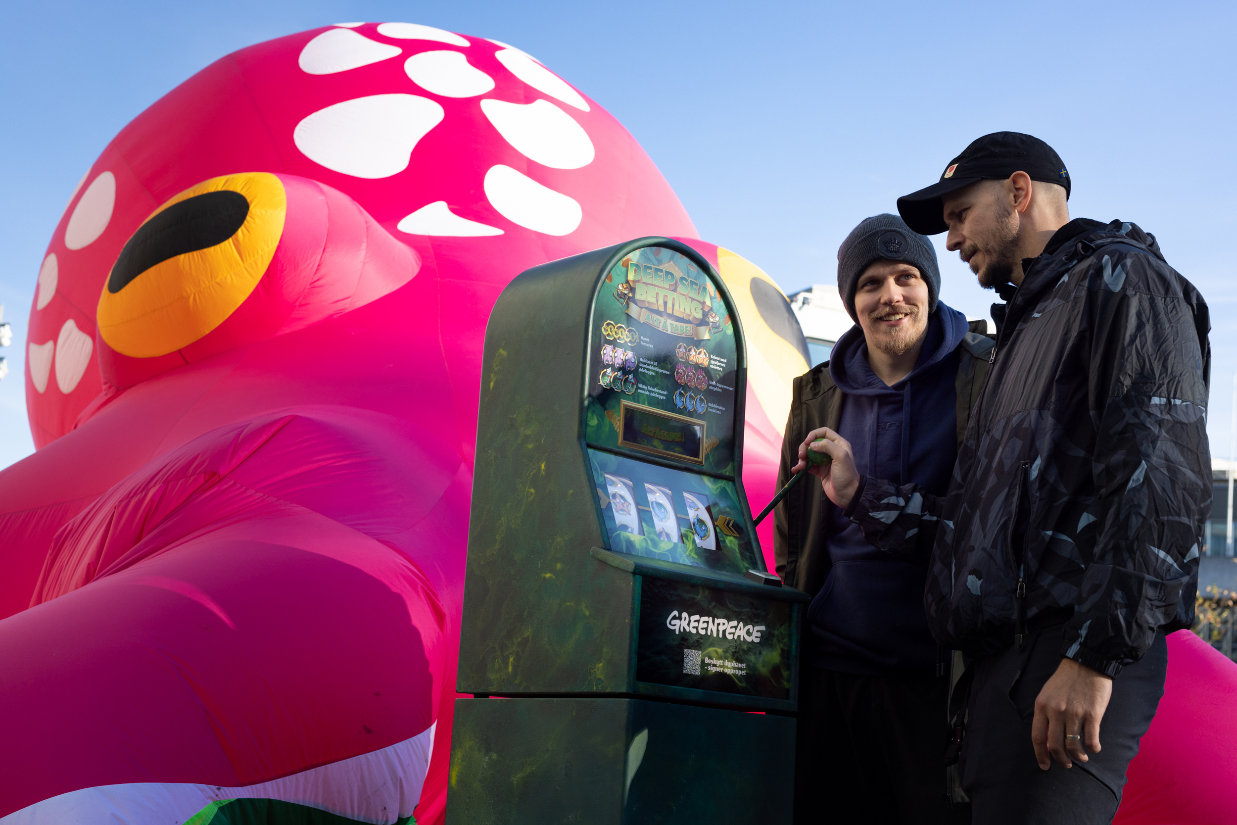 Nysgjerrige forbipasserende i Stavanger fikk tilbud om å teste miljøorganisasjonens nye spilleautomat «Deep sea betting», der spilleren symbolsk kan gamble med skjebnen til artene som lever i dyphavet.