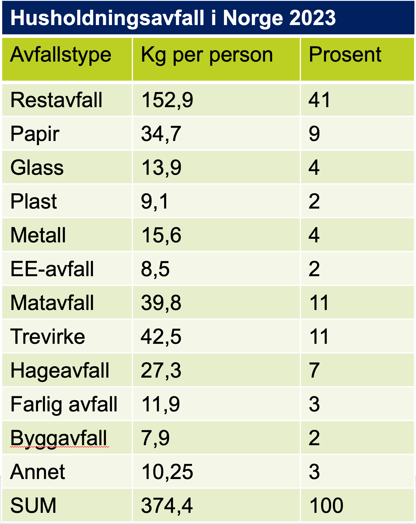 NTNU-analysen tar bare for seg husholdningsavfallet, som utgjør 25 prosent av totalen i Norge. Og om statistikken her er dårlig, er den, ifølge Matsson, helt elendig for alt det andre avfallet som skapes på arbeidsplasser, i industri og næringsliv.