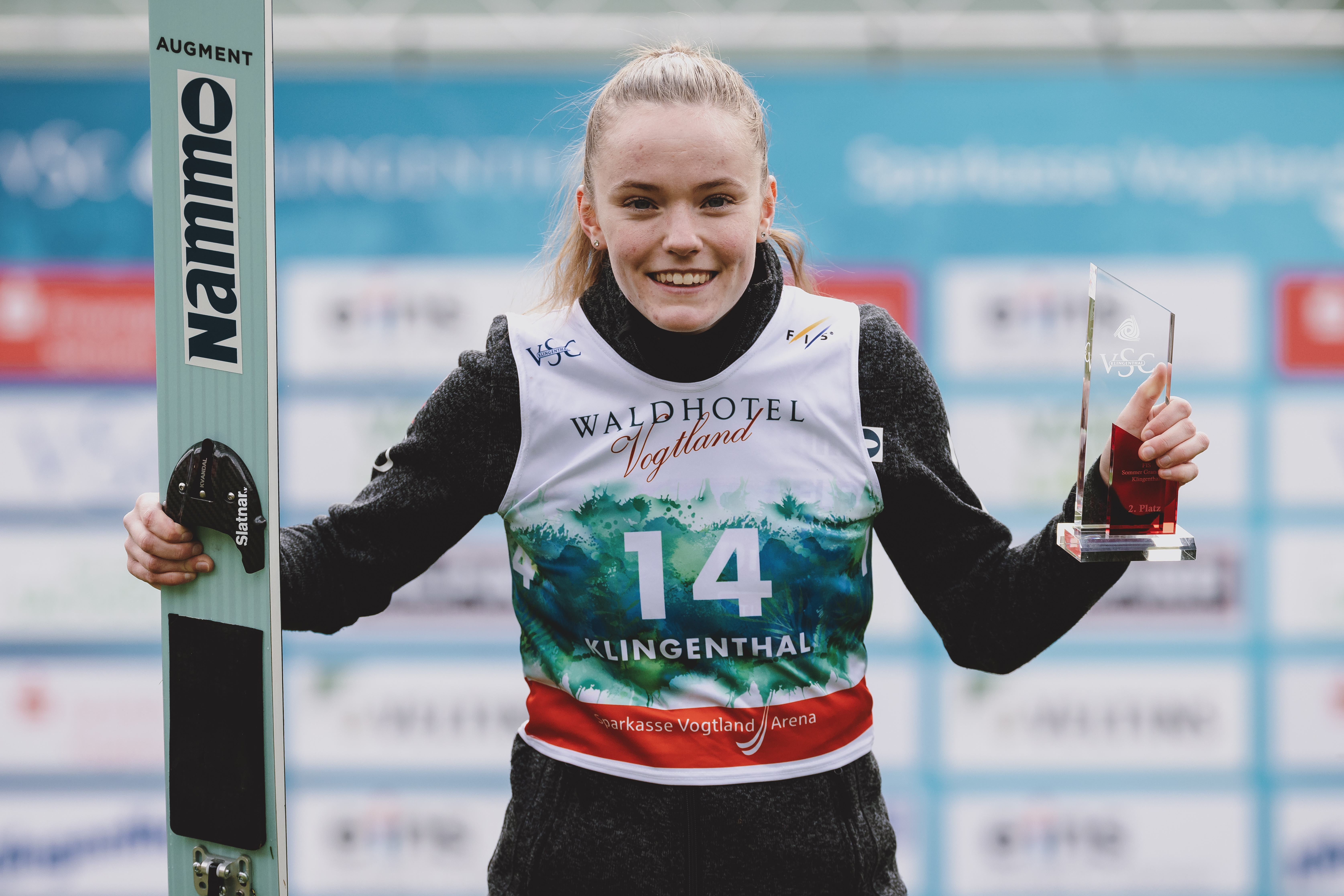 Eirin Maria Kvandal hoppet inn til en knallsterk annenplass i dagens finale i årets sommer Grand Prix-renn i tyske Klingenthal. Tyske Katharina Schmid vant rennet. Thea Minyan Bjørseth tok en sterk 4. plass, mens Silje Opseth ble nummer 13.