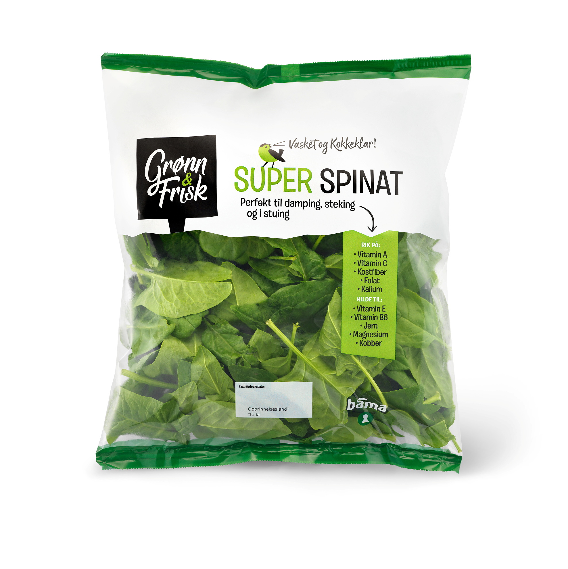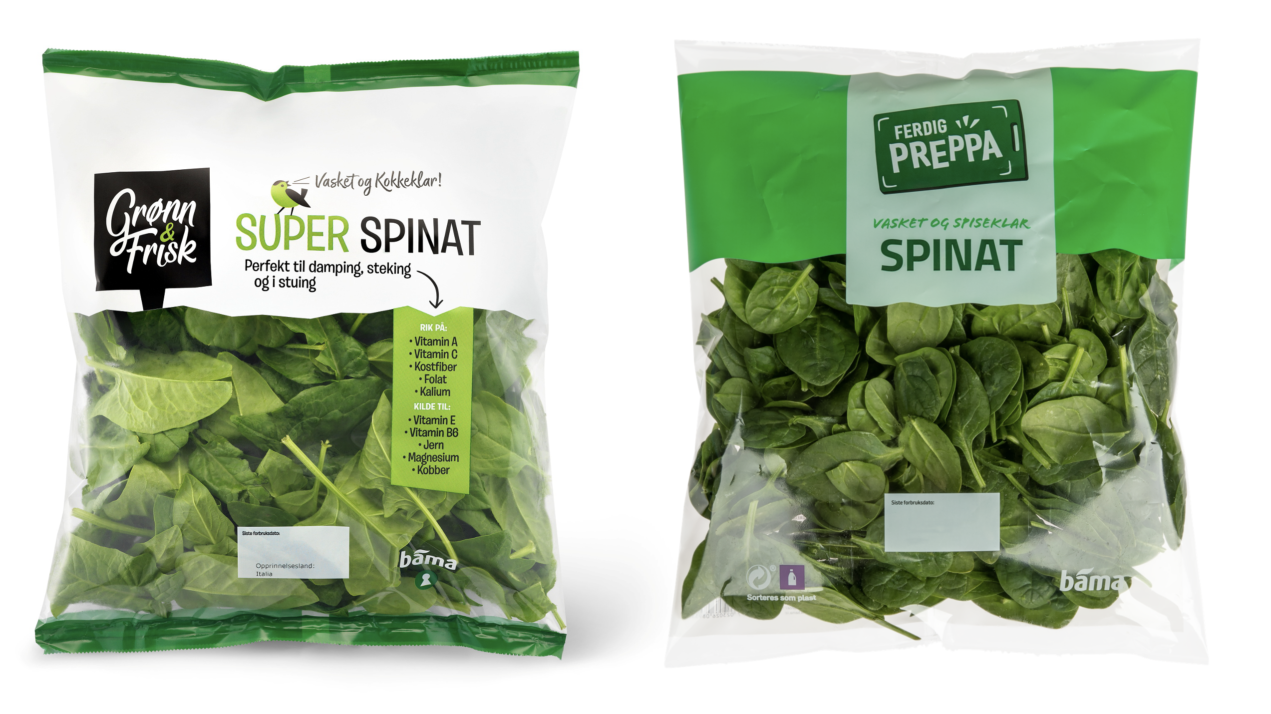 BAMA tilbakekaller poser med vasket spinat