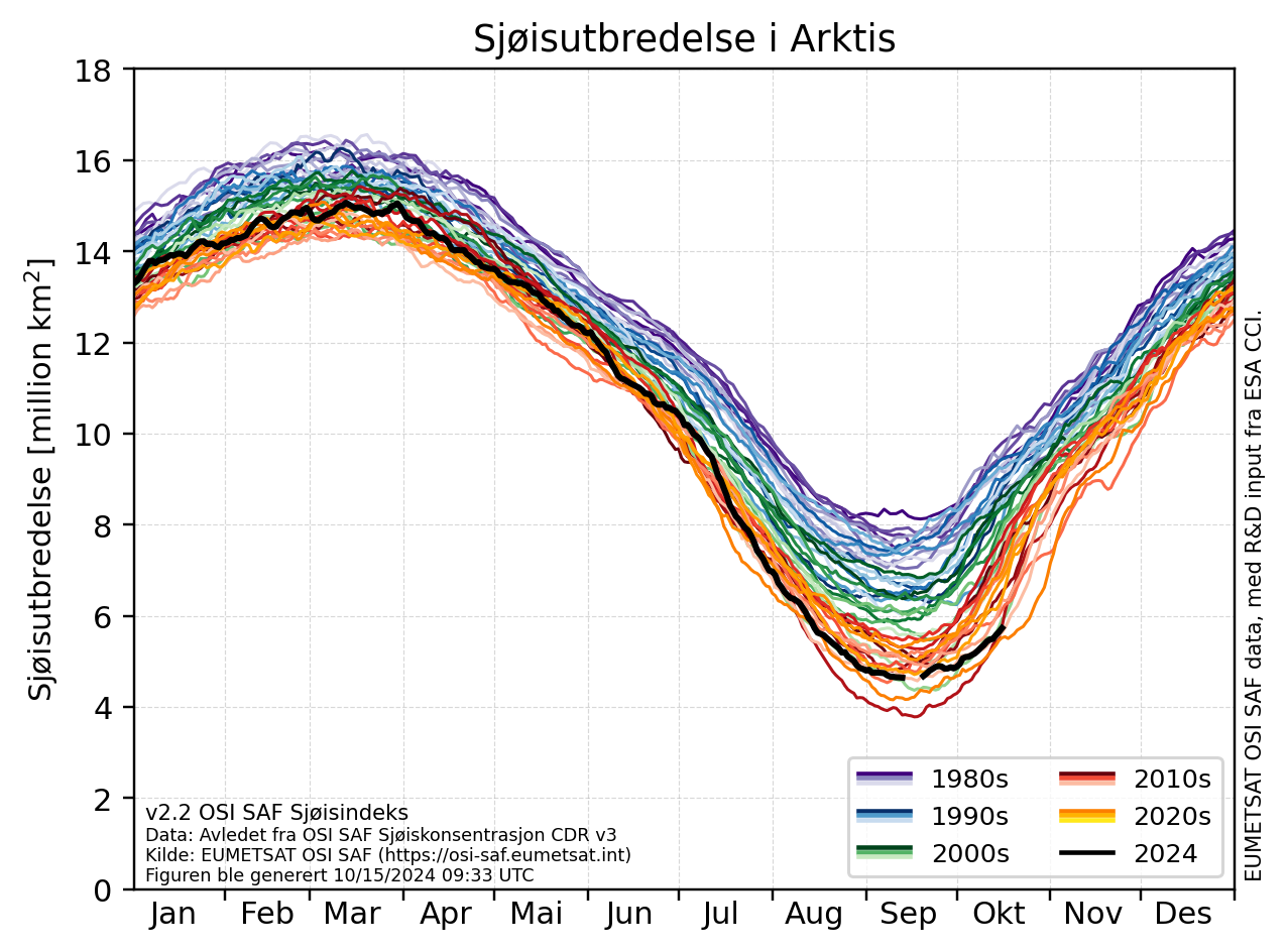 Den årlige minimumsverdien endte som den sjette laveste vi har registrert siden målingene startet i 1978. Selv om det ikke er rekordlavt, er det langt under gjennomsnittet.