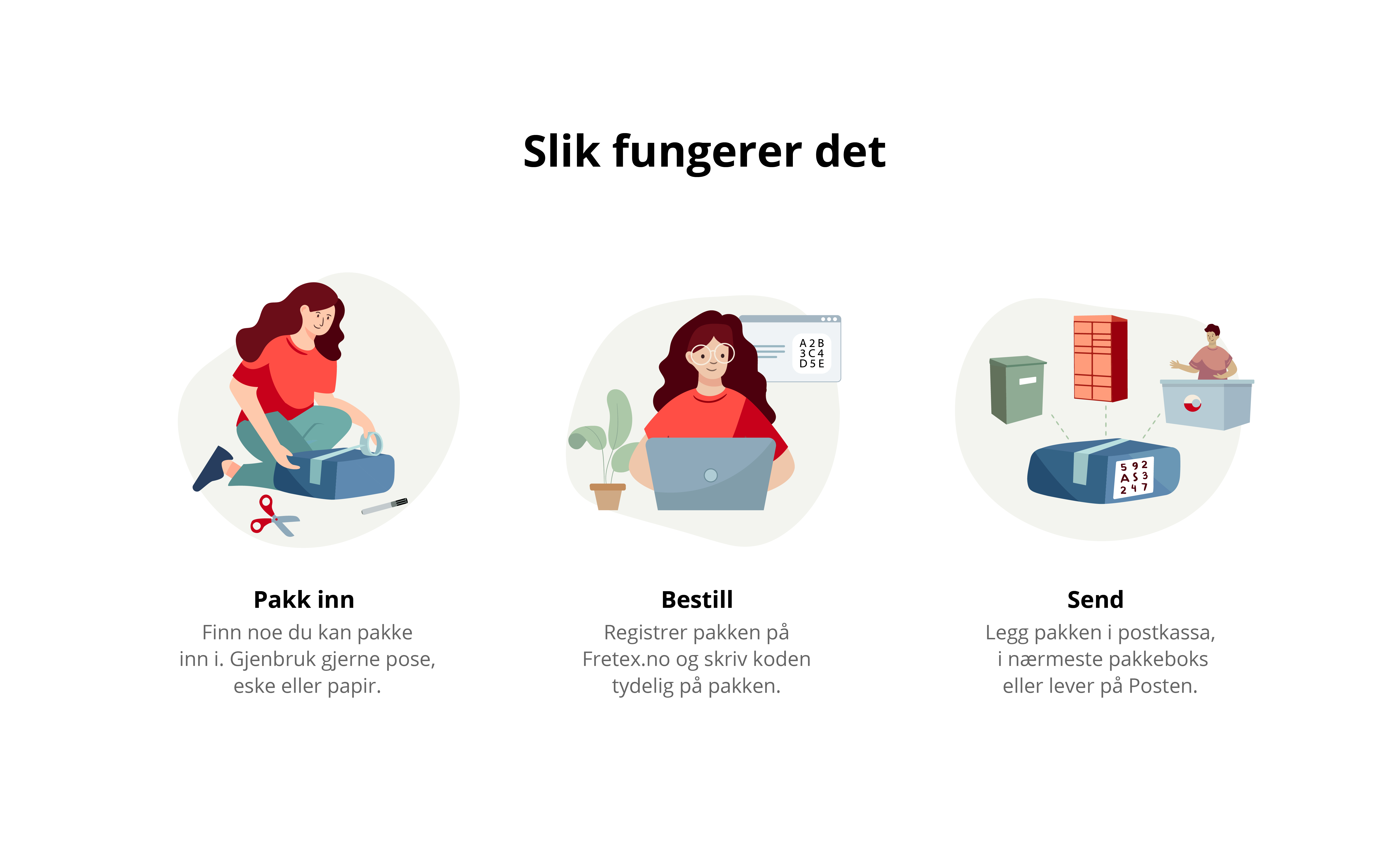 For å gjøre det enkelt å gi til gjenbruk har Posten og Fretex samarbeidet om å utvikle et nytt tilbud. Fra Fretex sine nettsider kan en kode til en forsendelse tas ut. Klærne som skal doneres kan pakkes inn i pose eller eske, og koden skrives på. Dermed har gaven startet på sin vei til Fretex sitt sorteringsanlegg.