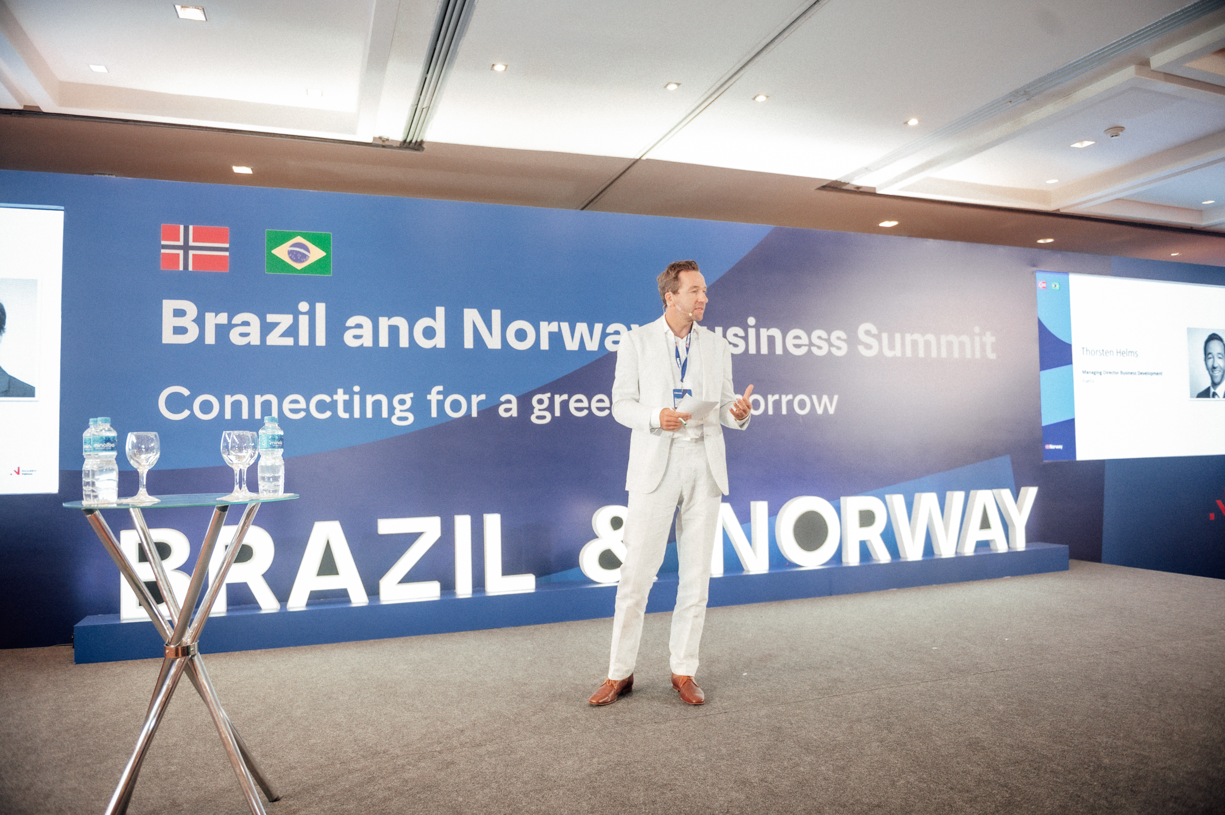 Under næringslivskonferansen på onsdag var det en markering av gründerbedriften Fuella fra Bergen sitt store prosjekt i havna Porto do Acu, hvor de skal bygge anlegg for storstilt produksjon av grønn ammoniakk ved bruk av hydrogen. Dette vil bidra til mer miljøvennlig skipsfart i Brasil og legge grunnlag for eksport.