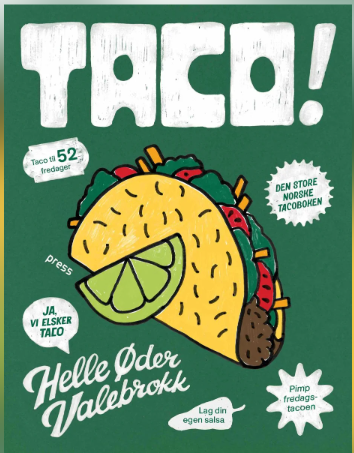 En bok man blir glad av å lese! Helle Øder Valebrokk har lagt ned et stort arbeid i å lage en tacokokebok som passer alle aldersgrupper. Boken byr på et bredt spenn av lekne oppskrifter, og forteller den nye, norske nasjonalrettens historie. Forfatteren forklarer grundig om topping, salsa, fyll og tortilla. Alt i et hjertevarmt forsøk på å få oss til å lage maten fra bunnen av. Boken har et ungdommelig og fargerikt design som gjør det morsomt å lese, og lett å mikse oppskriftene.