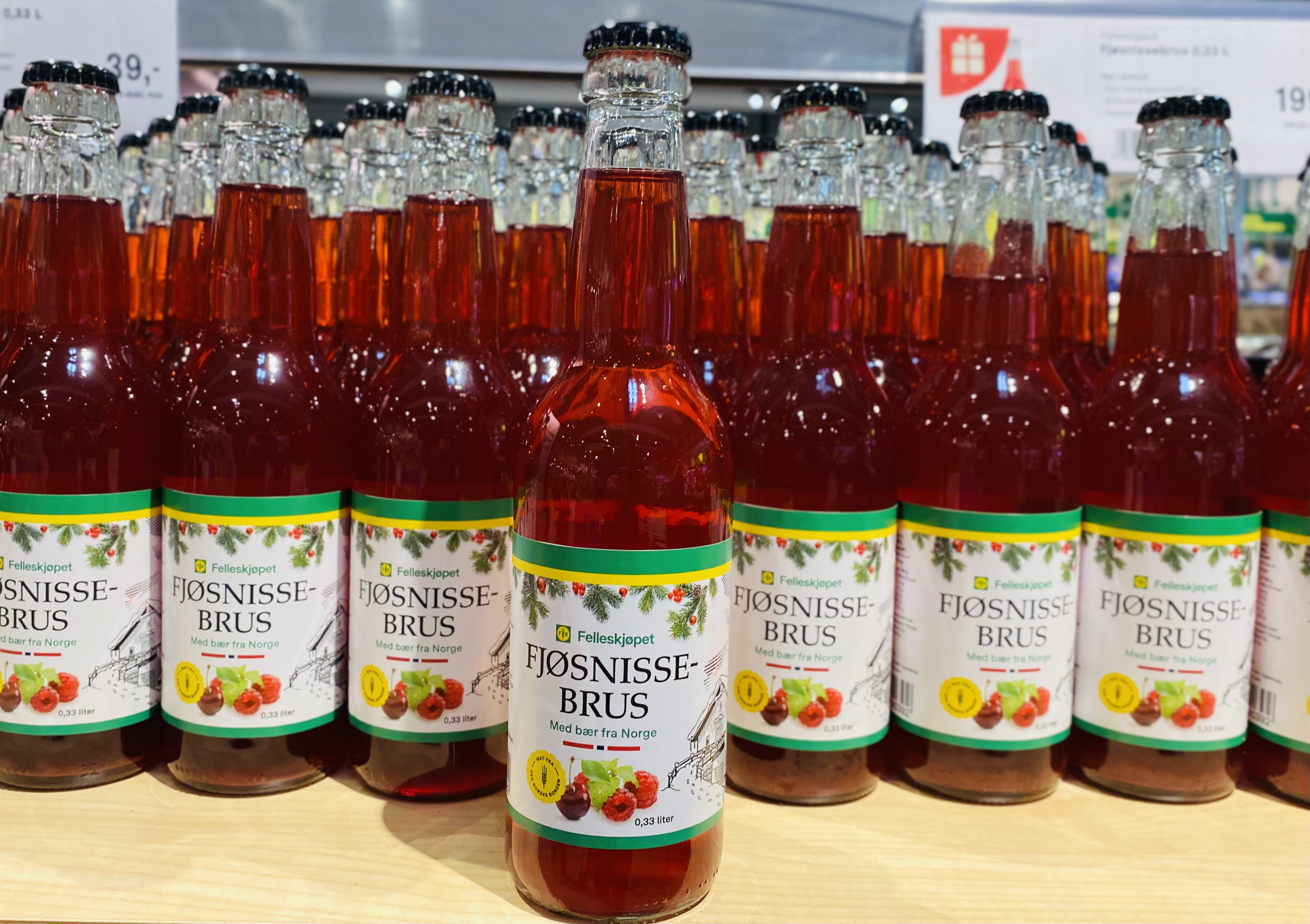Den ettertraktede julebrusen, laget med bær fra norske bønder, selges i blanke glassflasker og byr på ekte, norsk smak.