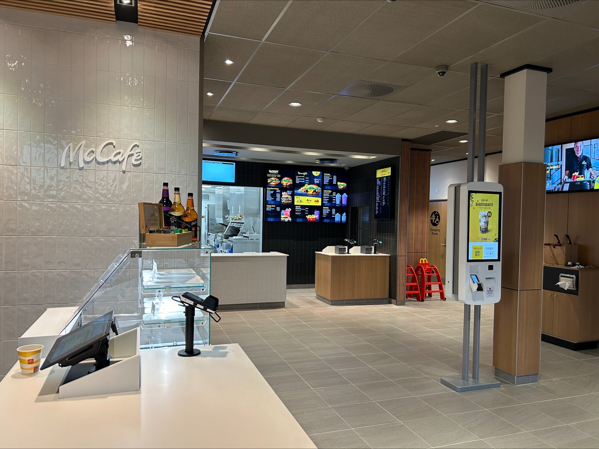 Restauranten har McCafé, med baristakaffe til en hyggelig pris. I tillegg har den Drive Thru og et Changing Places-toalett. Toalettet er et mer inkluderende handikaptoalett, spesielt tilrettelagt for personer som ikke får dekket sine behov av ordinære handikaptoaletter. Rommet er utstyrt med hev/senk stellebord for voksne, takheis for enkel forflytning, tilgjengelig dusj og et handikaptoalett med tilstrekkelig plass på begge sider.