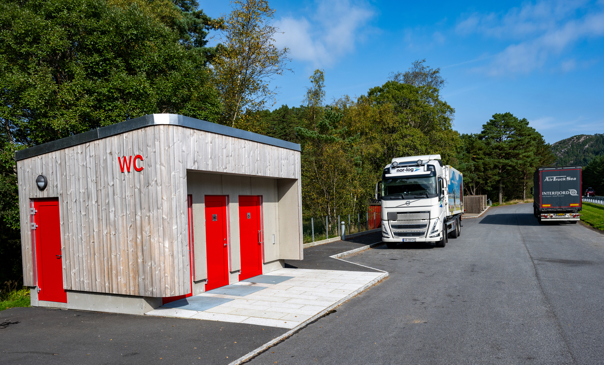 Flere døgnhvile- og rasteplasser med lademuligheter skal gi forutsigbare forhold for transportnæringen. Nye tunge kjøretøy skal være utslippsfrie i 2030.
