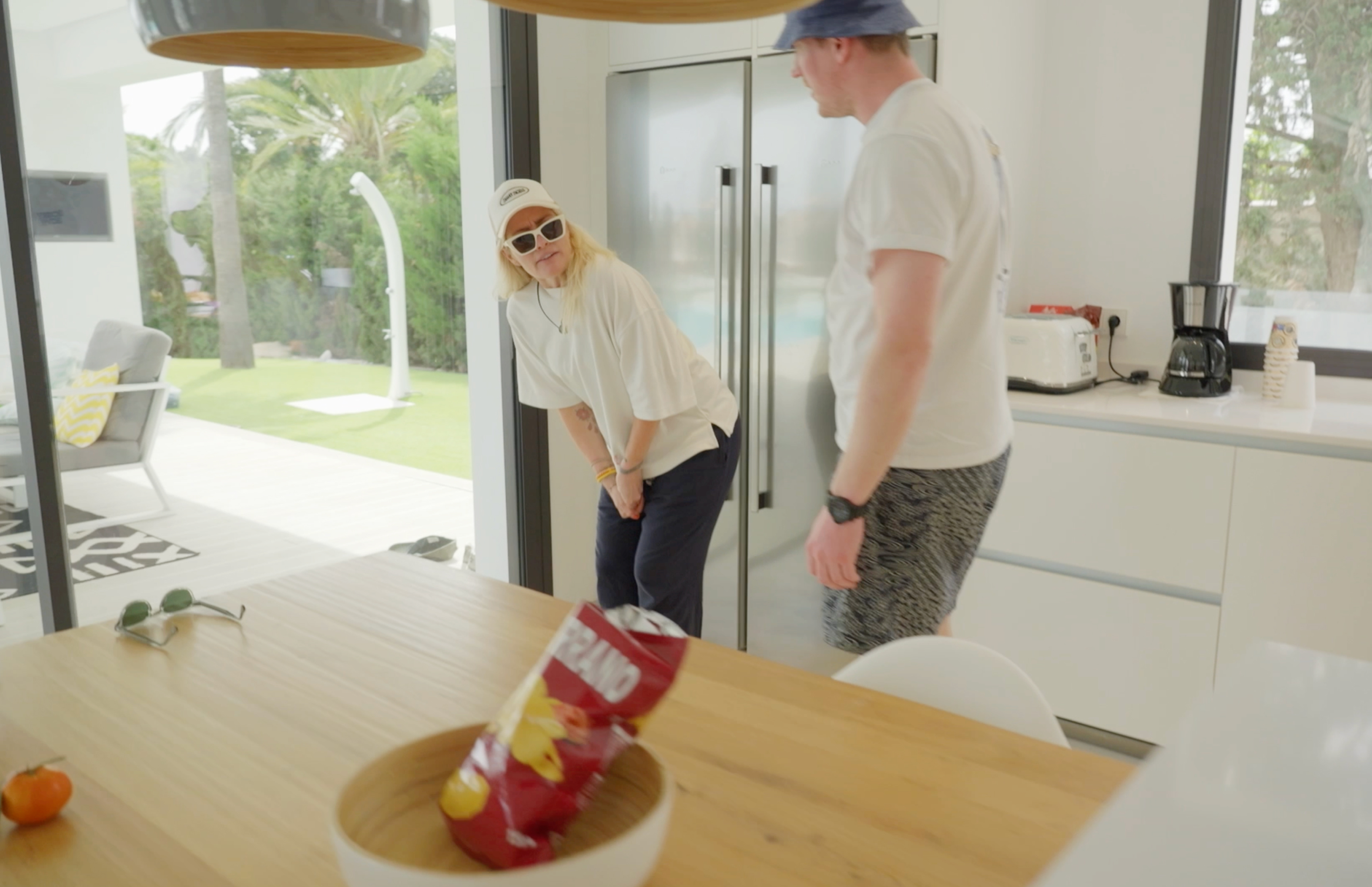 Allerede på innspillingens første dag oppsto en dramatisk hendelse da Mia Hundvin har en vennskapelig katt- og musjakt med Follestad, smeller igjen en dør, kjenner at hun mister følelsen i armen, og ser at deler av to av fingrene sine ligger på bakken.