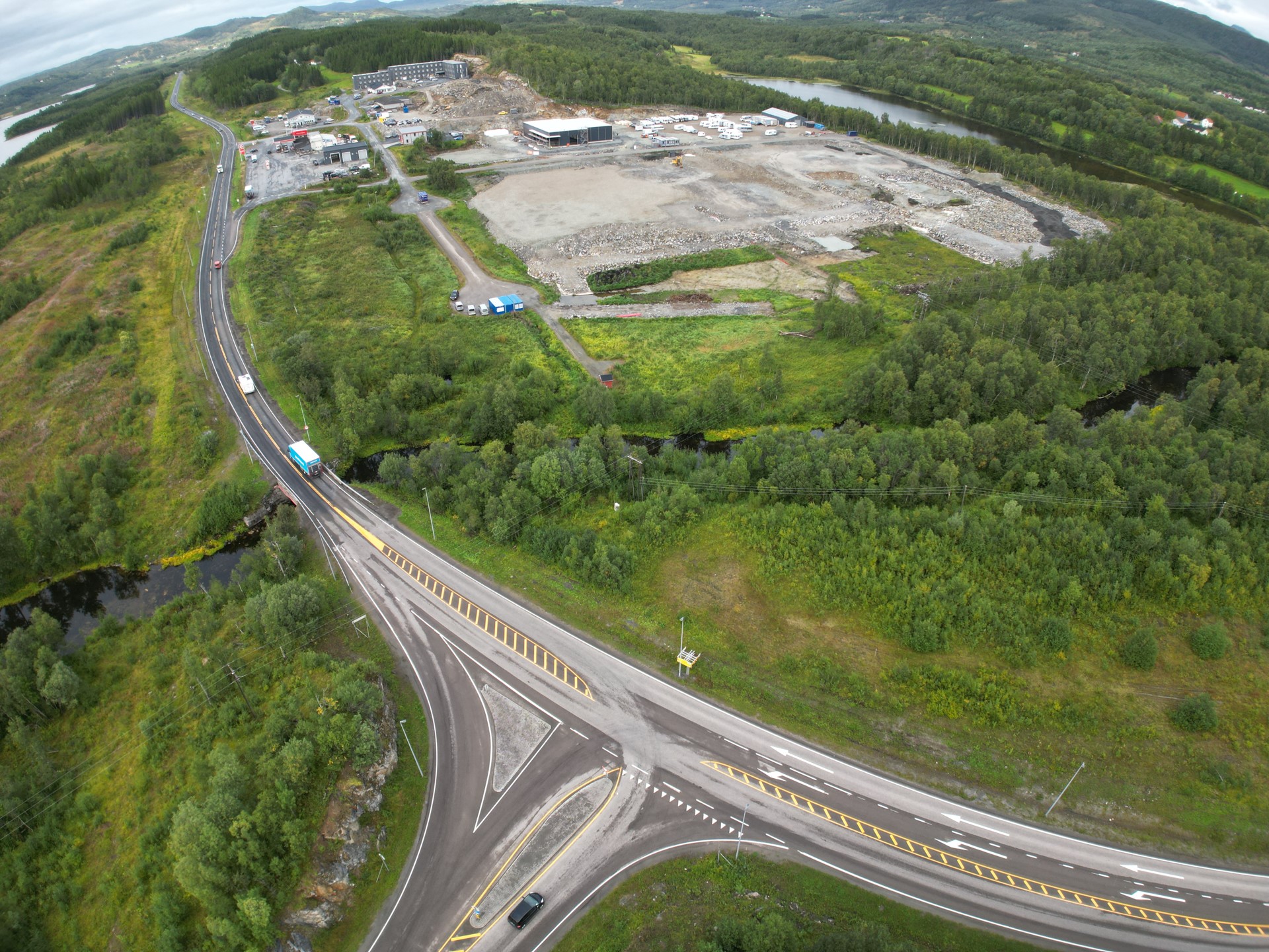 - Arm av E10 mot flyplassen består av 2 rundkjøringer og en veg på ca. 550 m.