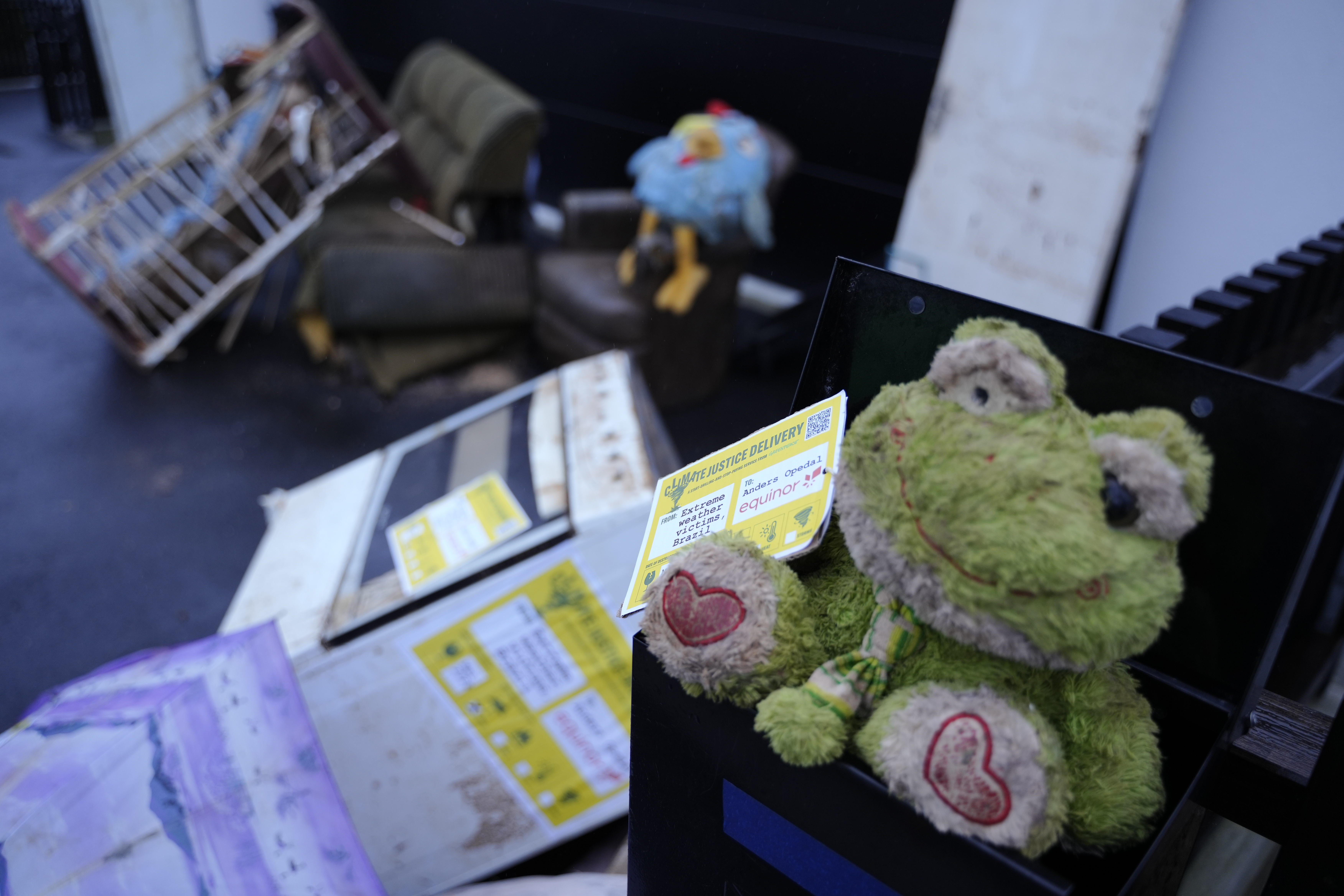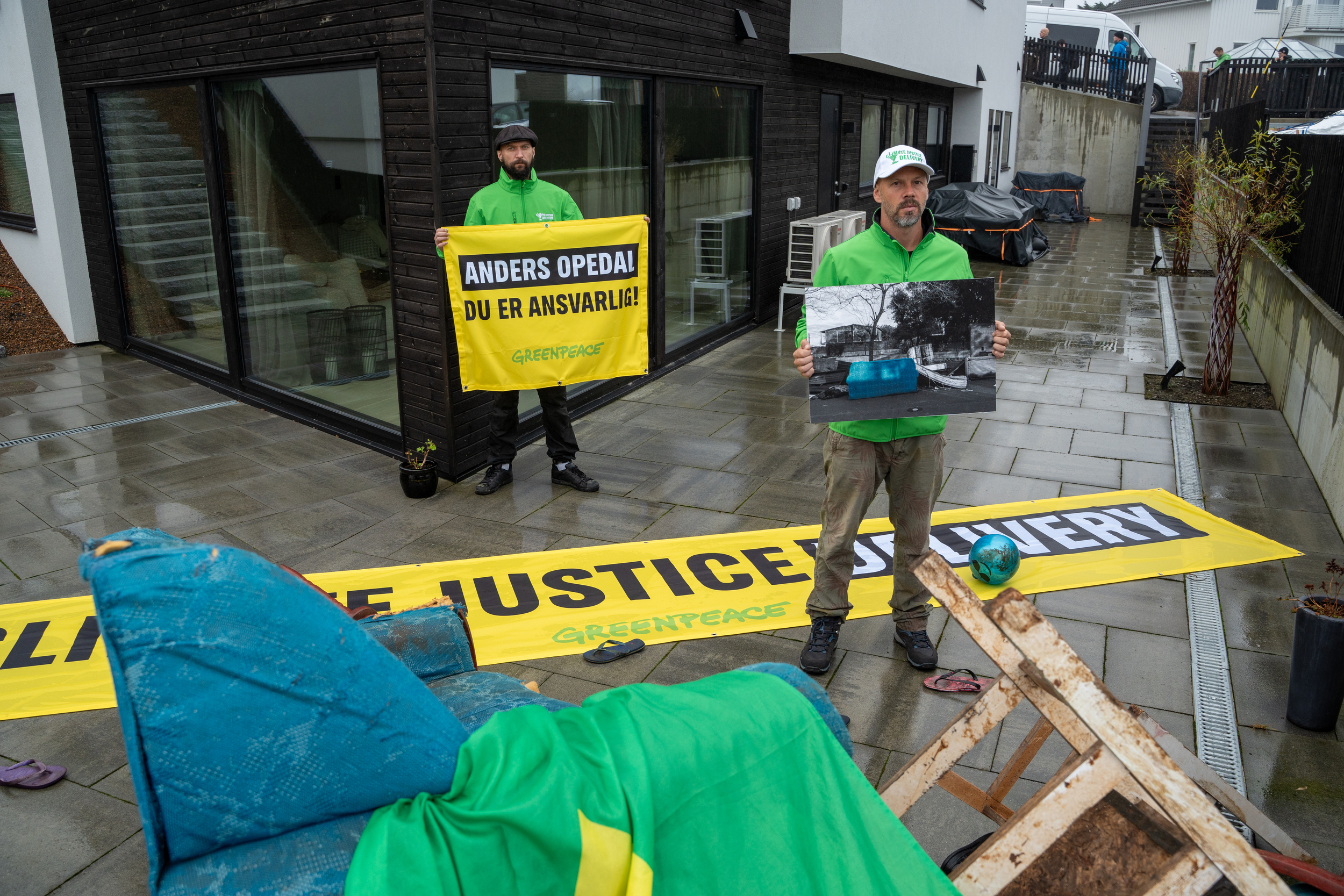 – Jeg vet at det er personlig å oppsøke Opedals hjem, men det er dypt personlig å miste mennesker du er glad i og alt du eier som følge av klimakrisens ødeleggelser. Disse gjenstandene kommer fra hjem i Brasil som nå er totalvraket av styrtregn, sier den brasilianske Greenpeace-aktivisten Claiton Wuaden Junior, som deltar i aksjonen.