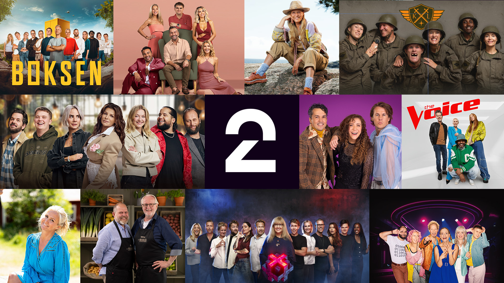 Farmen/Torpet (inkl. kjendis), The Voice, Quisling, Spillet, Asbjørns julekalender, Gullruten, God morgen Norge, TV 2s høstlansering