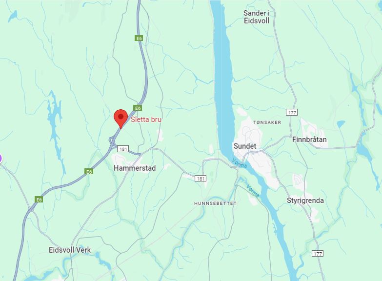 Sletta bru, som går over E6, ligger rett ved Eidsvolltunnelen og var en de 14 fagverksbruene i tre som ble stengt etter at Tretten bru falt ned. Over brua går Spetalsvegen, som er helstengt i byggeperioden. Brua kan ikke forsterkes og må erstattes av en ny bru.