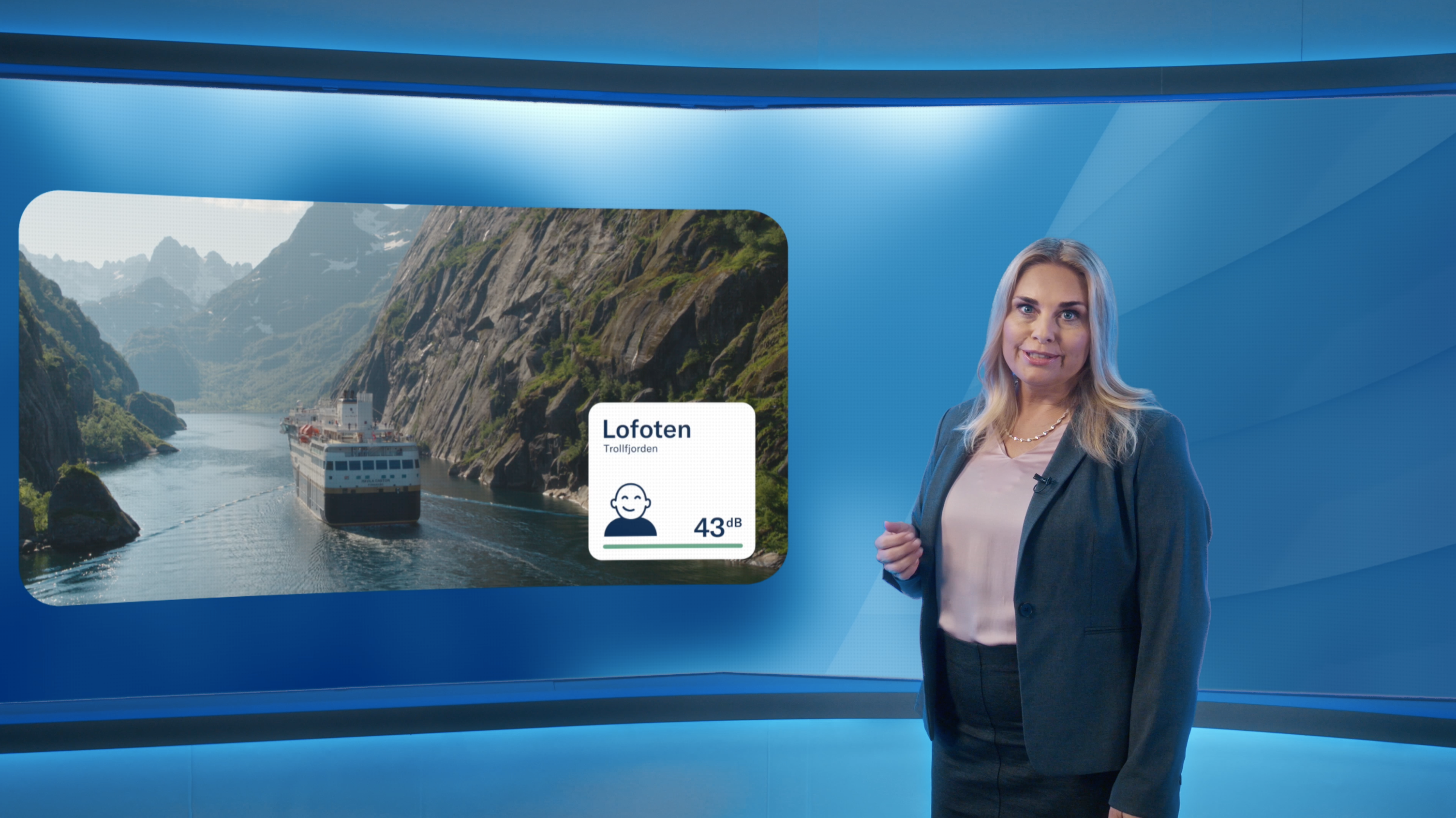 I Havila Kystrutens kampanjefilm, «The Noise Forecast», møter man det tidligere væranker Elin Tvedt. Hun har den siste tiden vært å se i TV-produksjoner som «Farmen kjendis» og «16 ukers helvete». Nå gjør hun comeback som TV-anker, men denne gangen er det ikke været hun skal melde – det er støyvarselet til Havila Kystruten som presenteres.