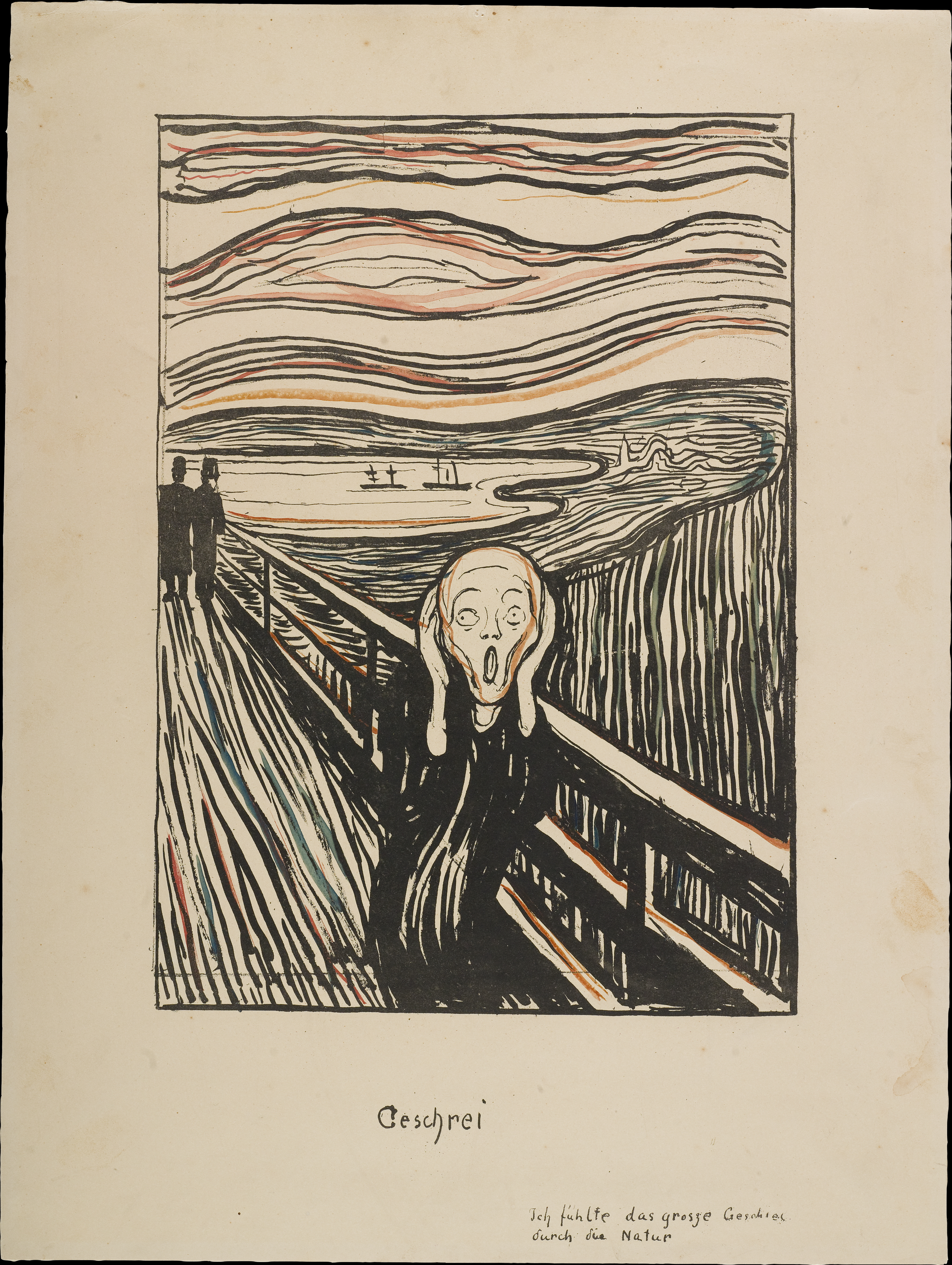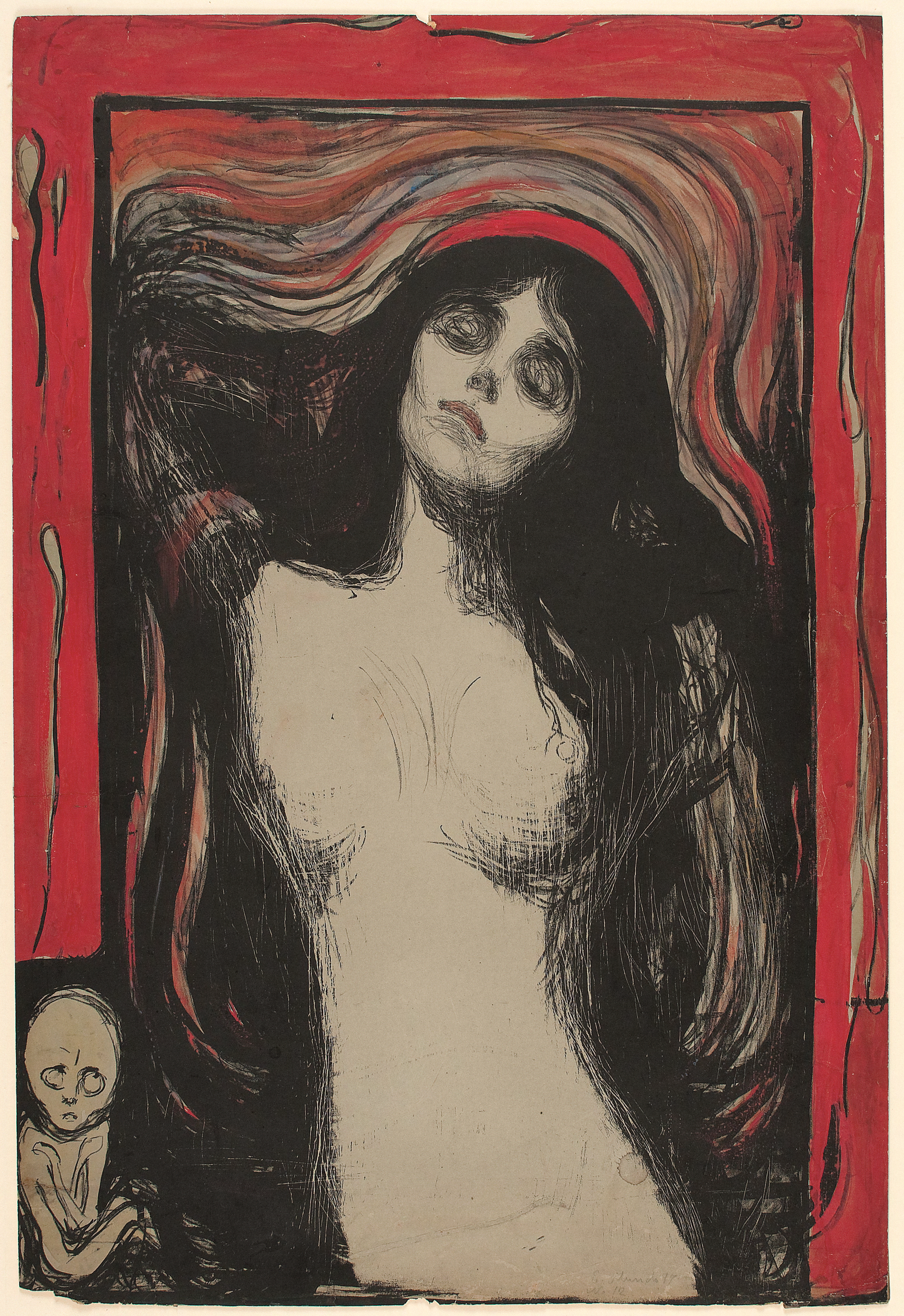 Skrik (1895), Madonna (1895/1902), Vampyr II (1895), Det syke barn I (1896), Sjalusi, I (1896), Aske I (1896), På kjærlighetens bølger (1896), Angst (1896), Aften på Karl Johan (1896/1897), Mot skogen (1897), To kvinner ved stranden (1898/1915-17), Kvinnen i tre stadier, Sfinx (1899), To mennesker. De ensomme (1899), Kyss IV (1902), Pikene på broen (1918)