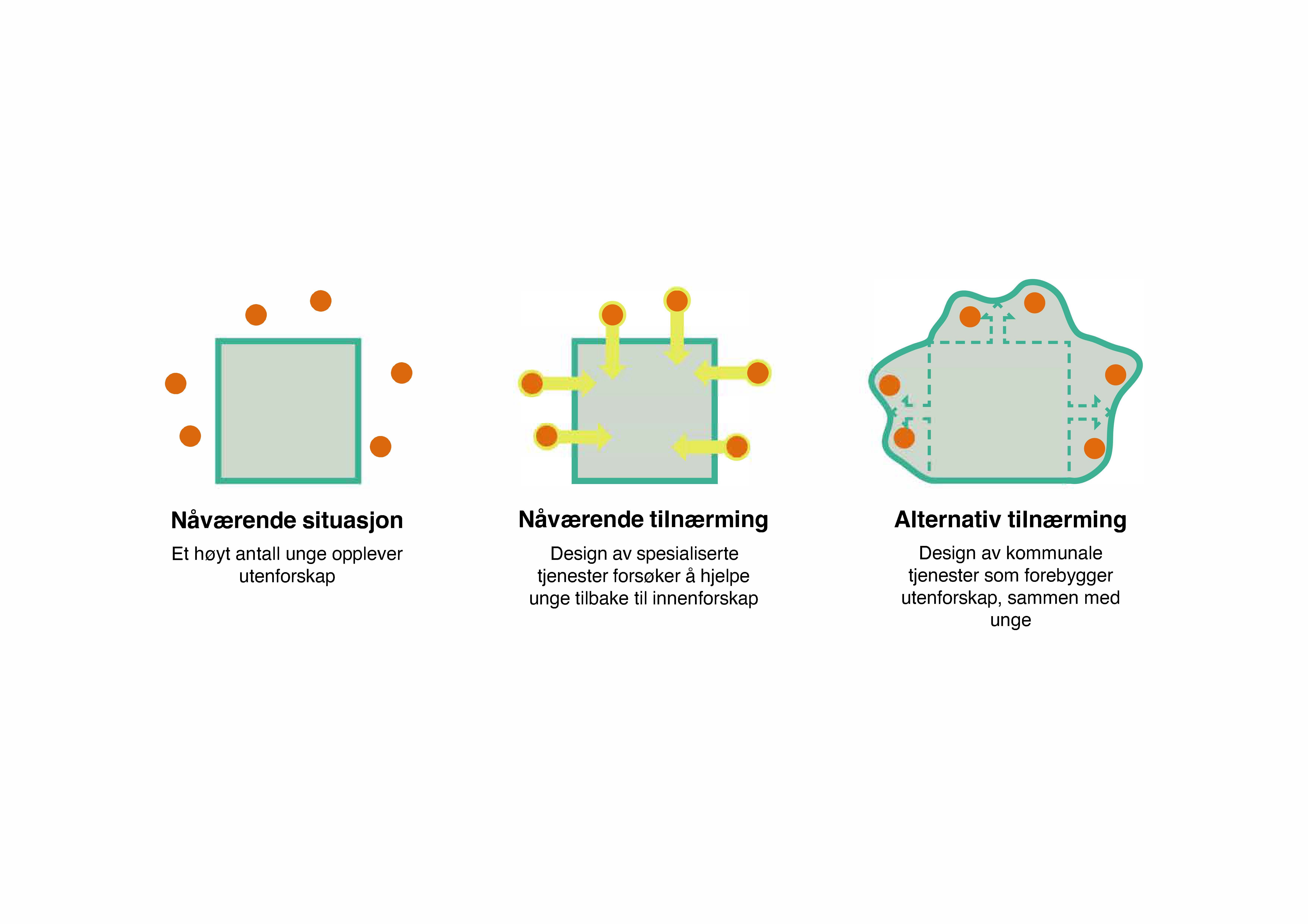 Ungt utenforskap håndteres i dag typisk gjennom individuelle tiltak, der unge som opplever utenforskap, skal hjelpes tilbake til det som regnes som innenfor.