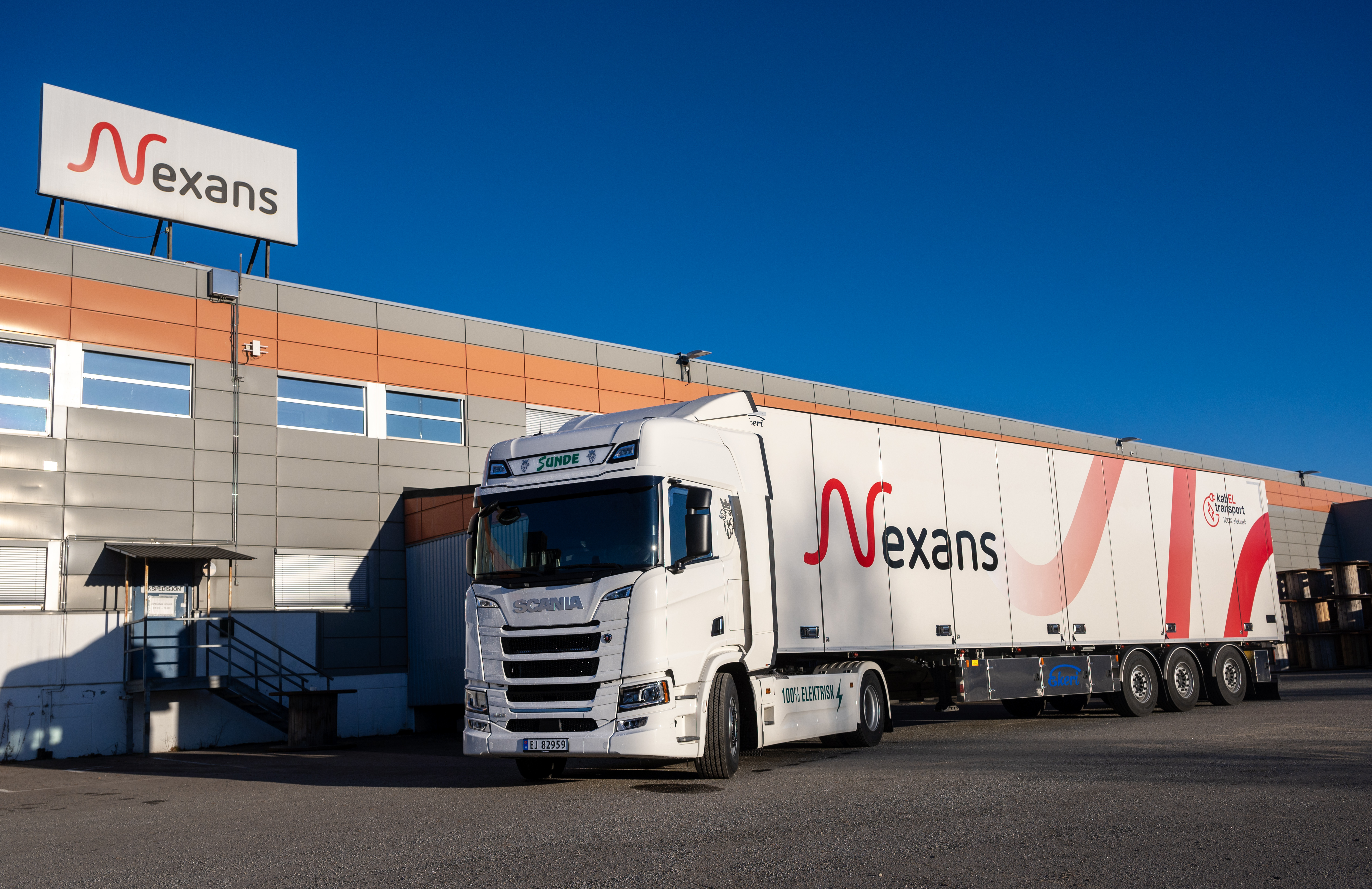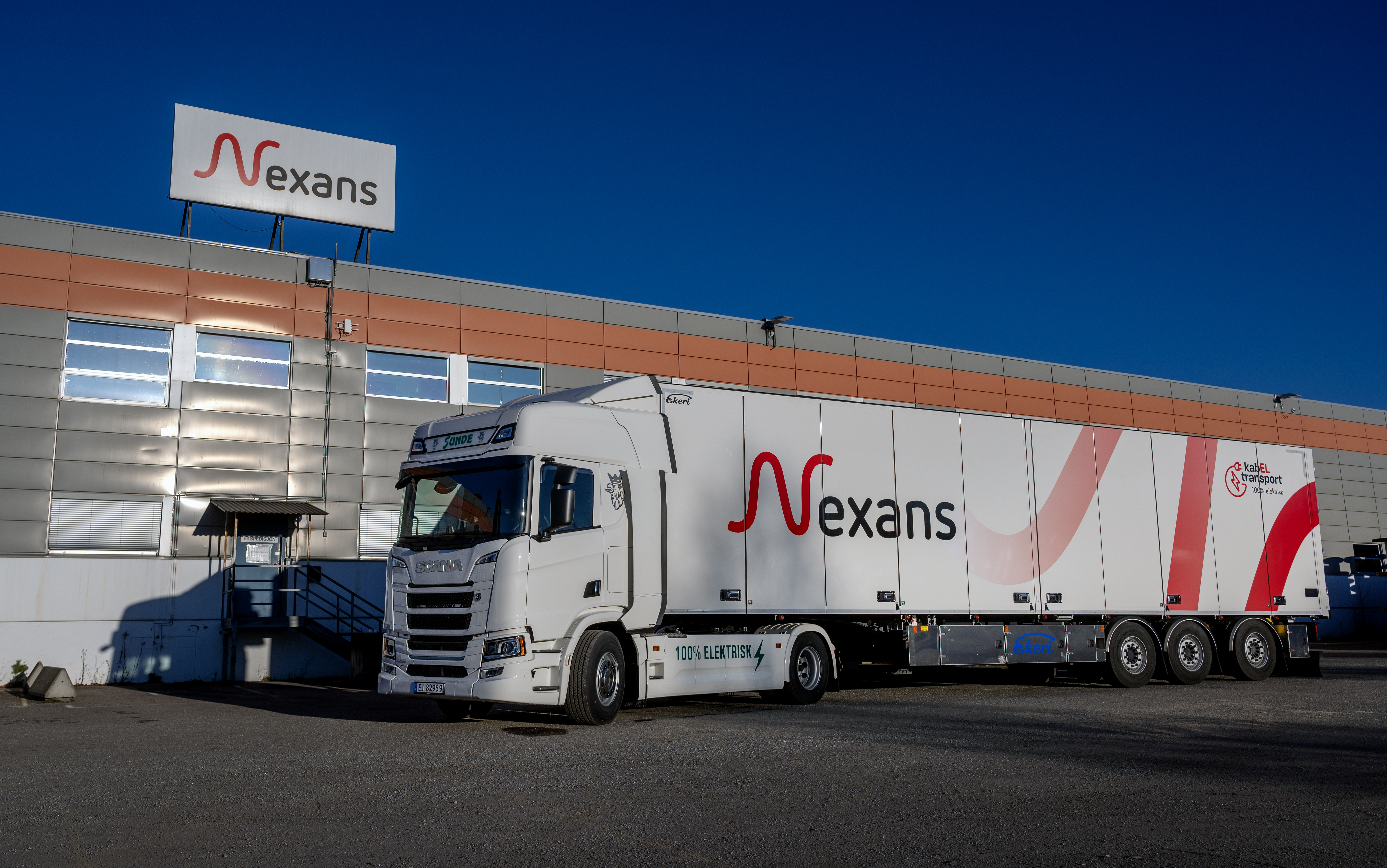 Den nye Scania 45 R elektriske trekkvogna er selskapets første elektriske lastebil. Helt siden 70-tallet har de vært transportør for kabel-produsenten Nexans. Og det var Nexans som hadde krav om elektriske lastebiler til distribusjonen av deres varer. Kanskje er det ikke så rart for en produsent av elektriske kabler? For også Nexsans har satt seg ambisiøse mål om kutt av halvparten av sine utslipp innen 2030. Da er elektrisk transport en vikitg faktor for å nå målet.