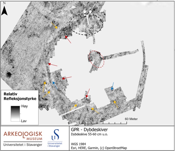 Georadar-bildene viser tydelig at jordlagene i haugen ikke er naturlig avsatte lag, men menneskeskapte.