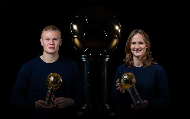 Caroline Graham Hansen og Erling Braut Haaland er vinnerne av Gullballen 2025.