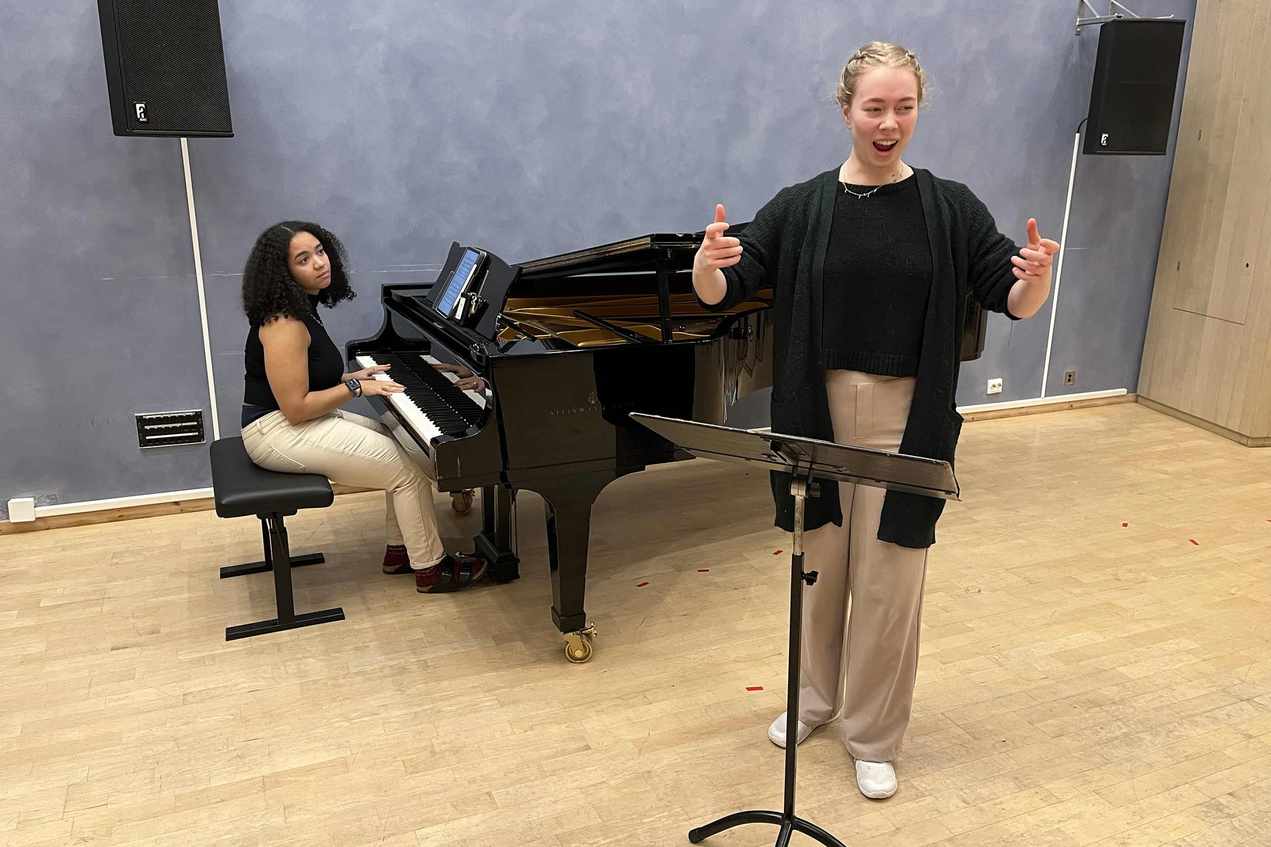 – Eg gler meg til ei annleis veke. Her på konservatoriet står me vanlegvis for oss sjølve på eit øvingsrom og jobbar med eige instrument. Når me no har eit felles prosjekt, er det meir sosialt, og me kjem oss ut i byen, seier Rørtveit.