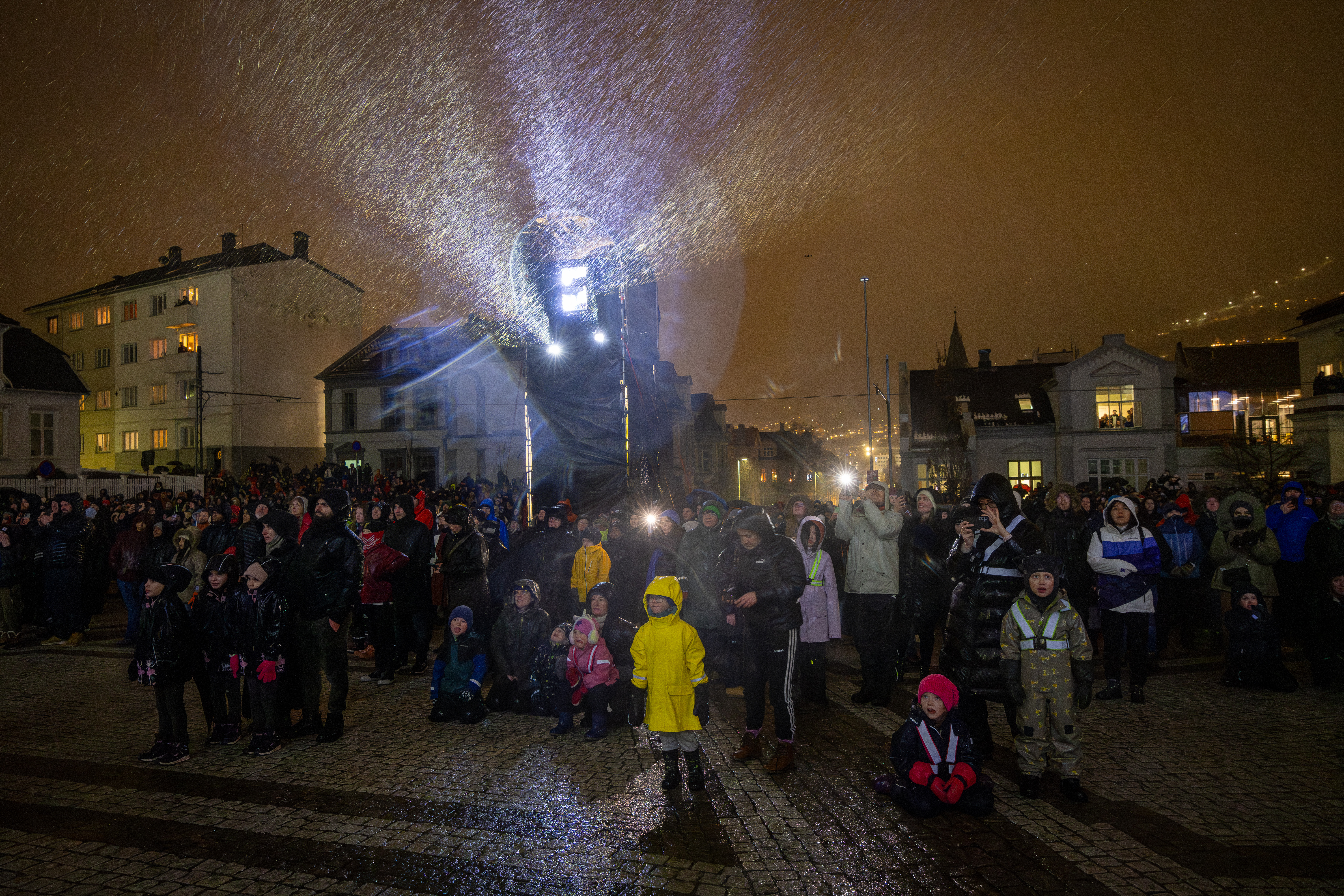 Lysshowet ble vist til sammen fem ganger lørdag og søndag, og totalt møtte over 15.000 mennesker opp i tradisjonelt bergensvær på Muséplass for å få med seg visningene.