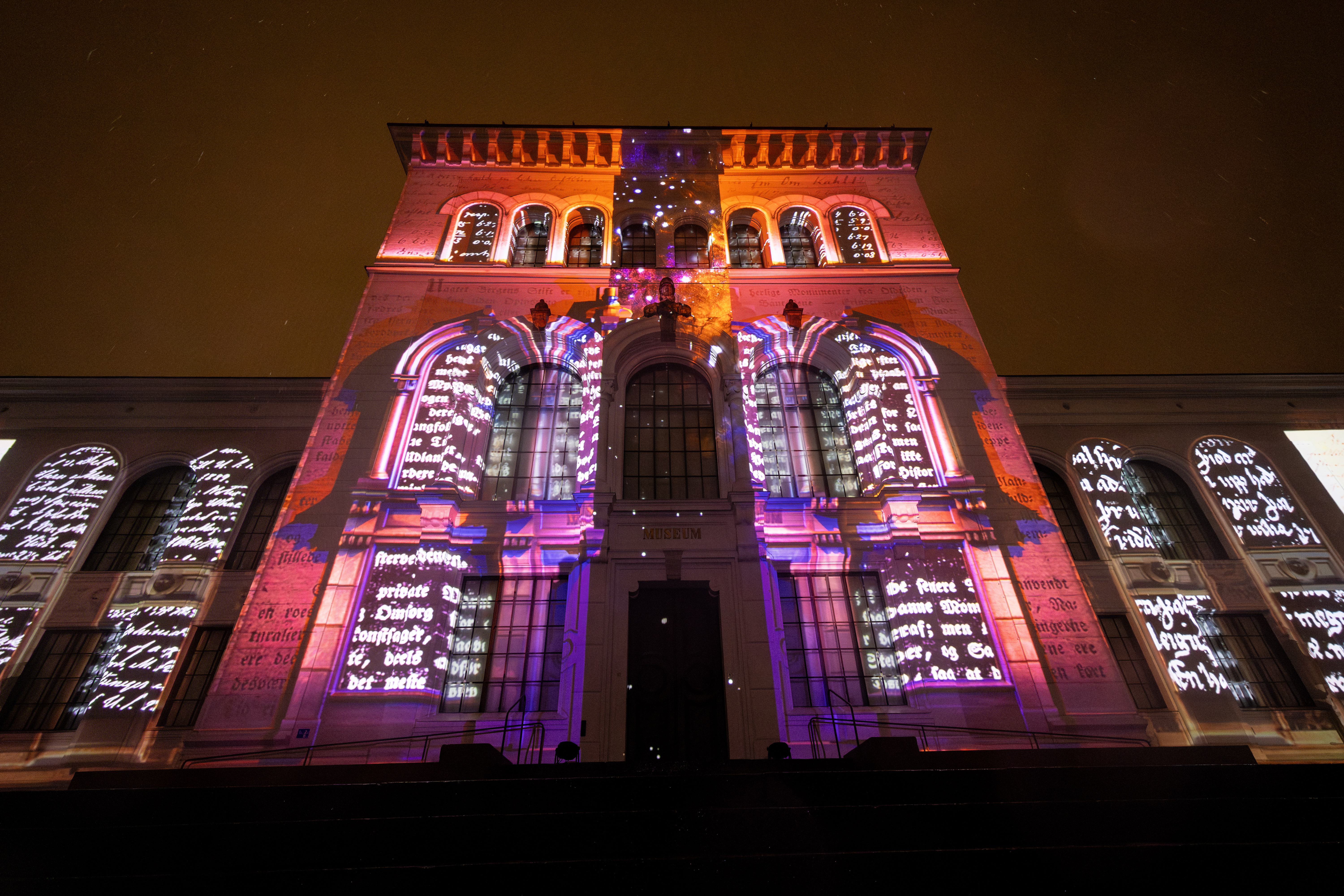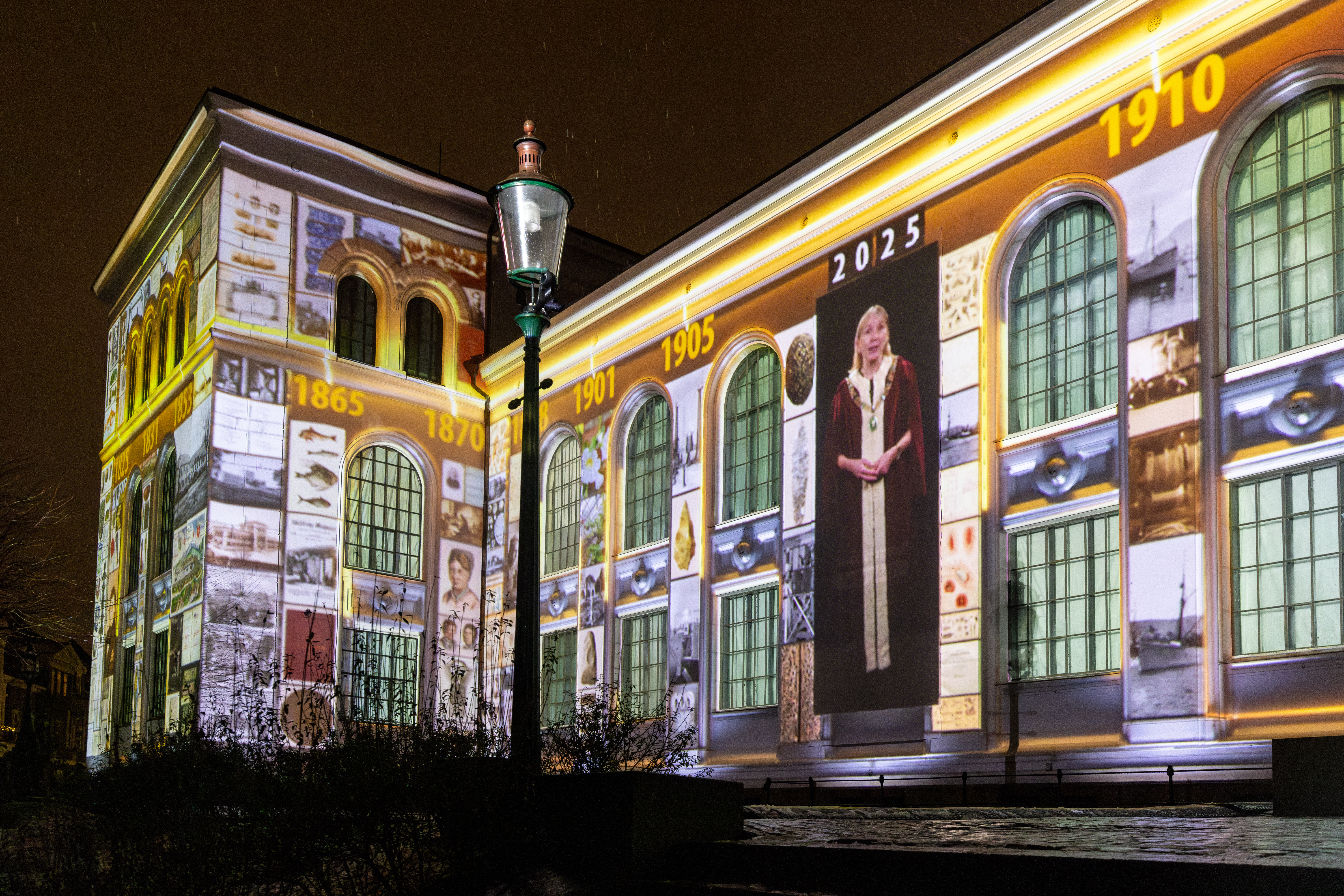 Lysshowet som ble vist på Universitetsmuseets fasade, markerer starten på UiBs og museets 200-årsjubileum. Lysshowet er designet av Kolibri Media, med originalmusikk komponert av Kjetil Fluge, og produsert av Kulturoperatørene.