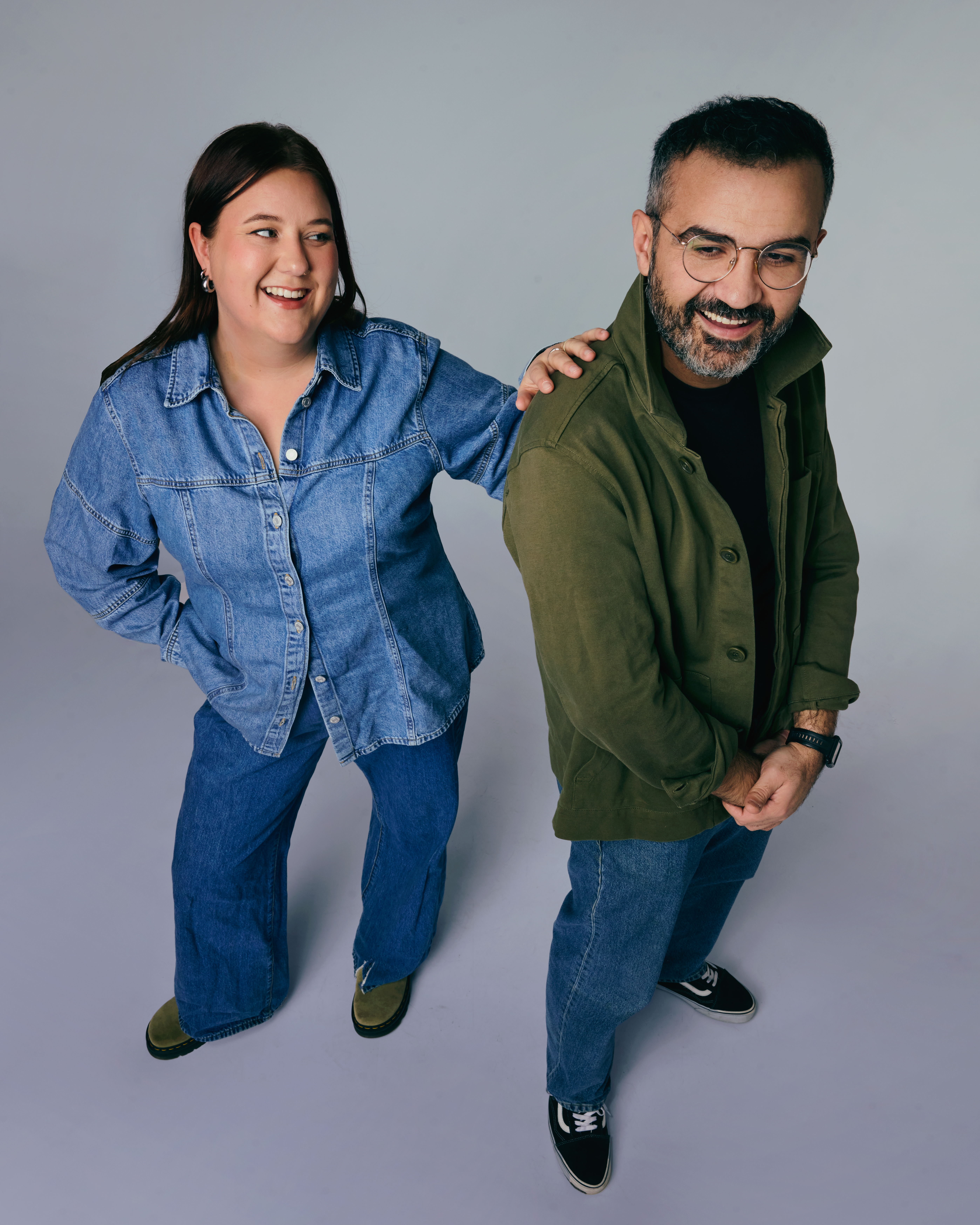 Komikerne Martha Leivestad og Galvan Mehidi gjør sitt beste for å ta sterke meninger på alvor i podkasten «Misforstå meg rett». Foto: Guro Sommer Værland, BAFF/NRK