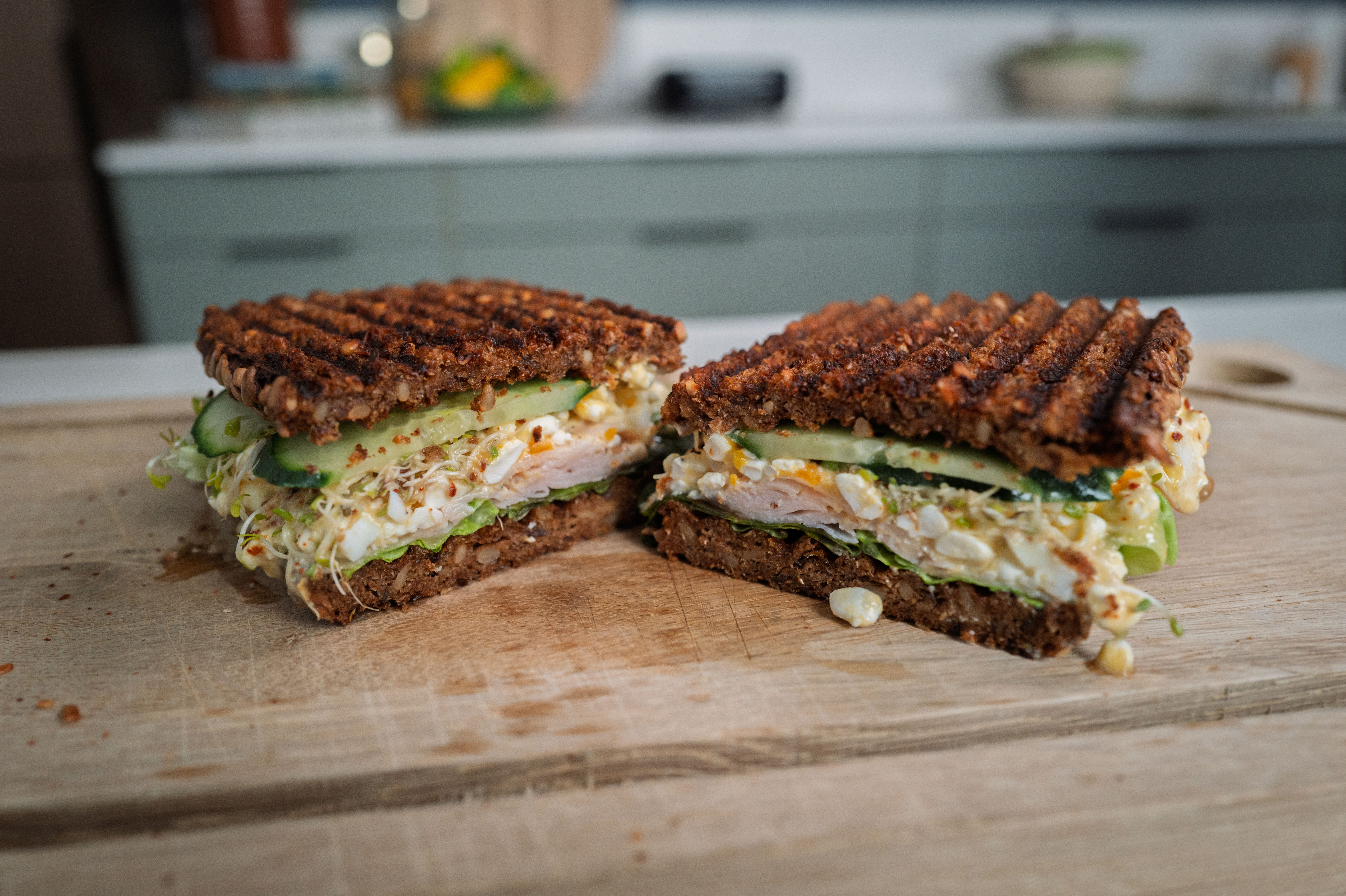 – Brød er ganske mildt på smak, noe som gjør at brød er lett å sette sammen med andre råvarer. Vi har laget sandwicher til ulike situasjoner, for eksempel en sandwich med cottage cheese og kylling som passer perfekt rett etter trening, eller en deilig sandwich med biff og karamellisert løk du kan trylle frem når du får venner på besøk.