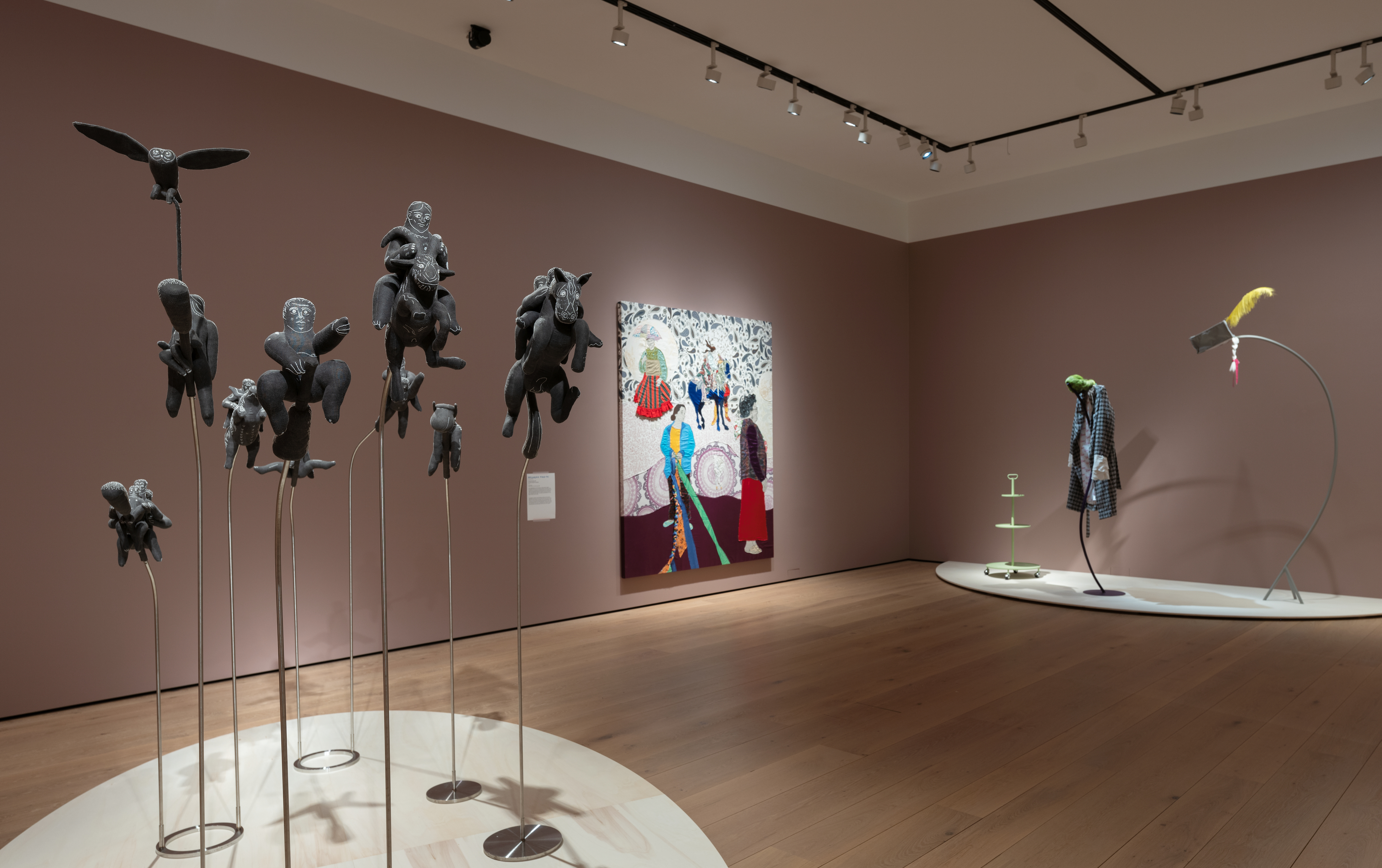 I spennet mellom jazzinspirerte armbånd fra 1950-tallet og visjonære arkitekturprosjekter av nyere dato, byr utstillingen på alt fra heksekunst og blomstermotiver til eksistensielle kriser og humoristiske skråblikk på tilværelsen.