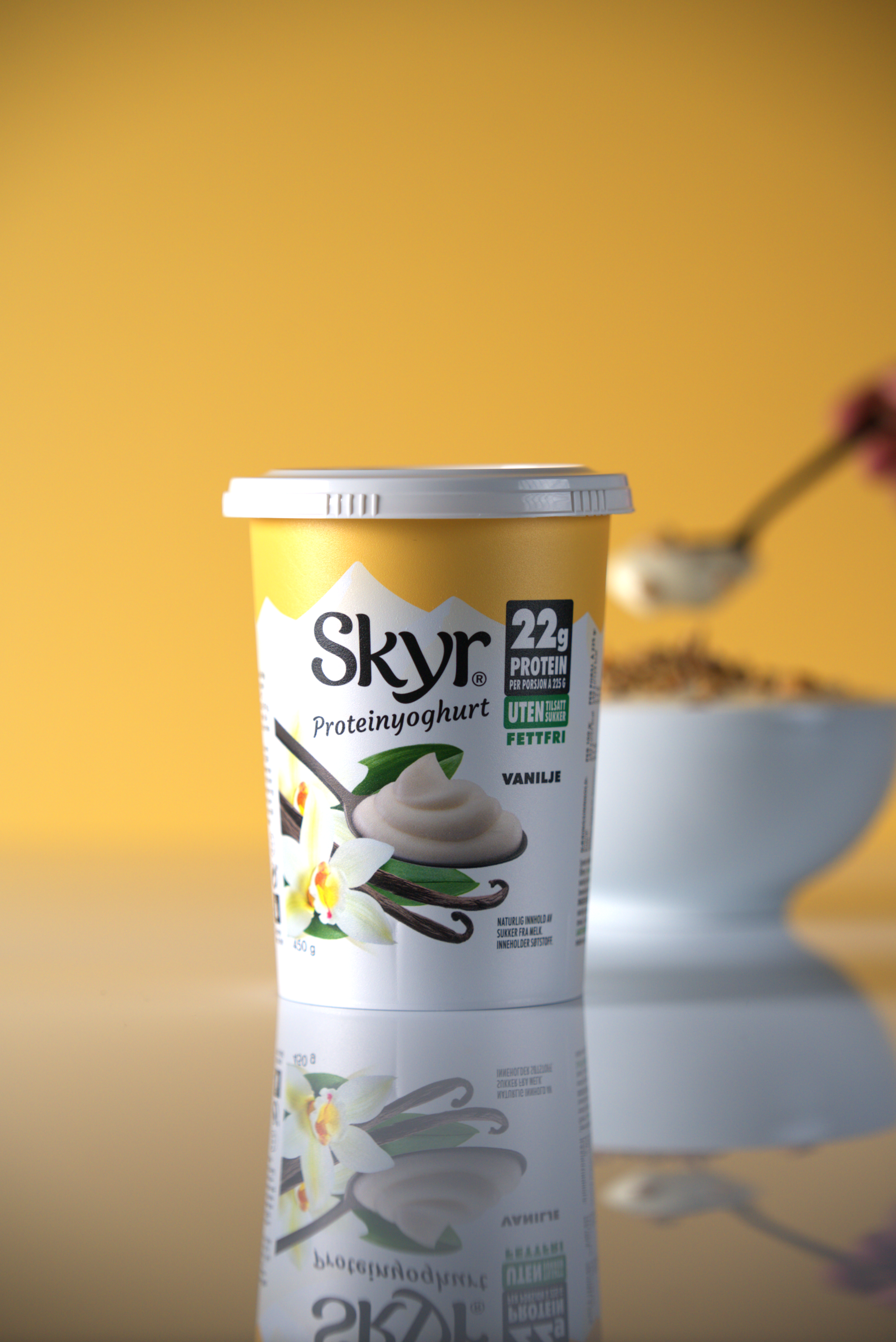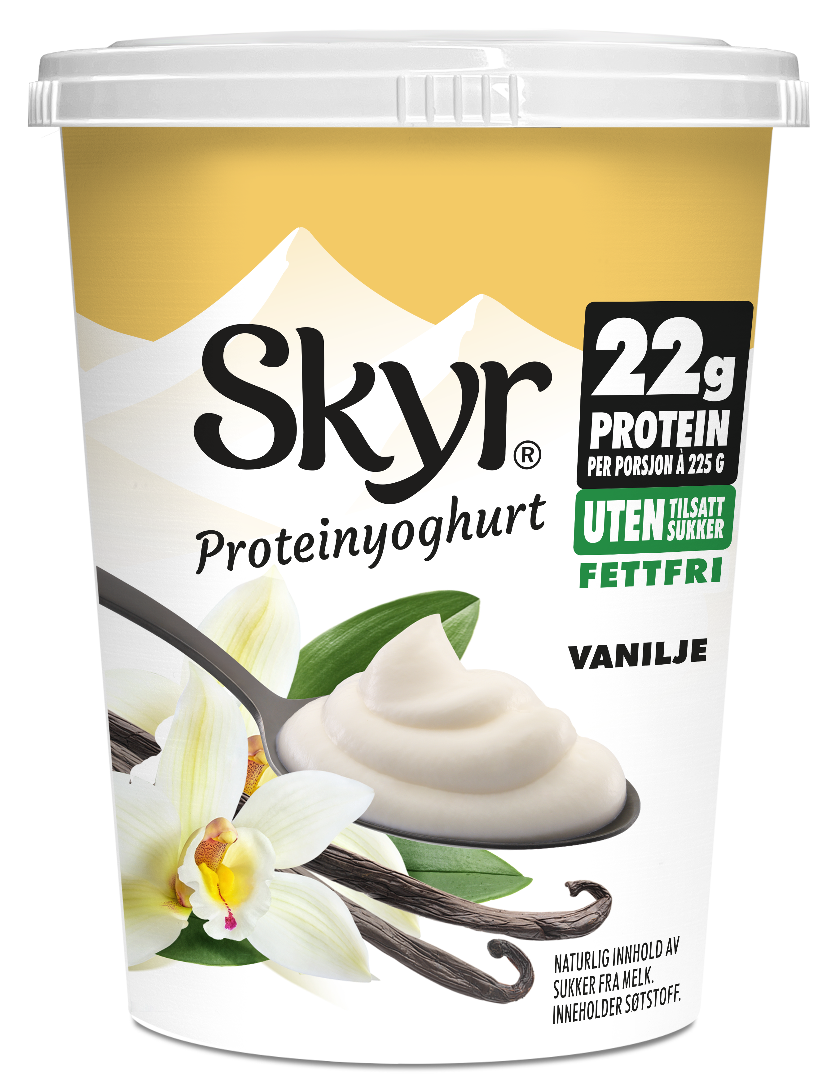 - Skyr® Proteinyoghurt Vanilje i stort beger – endelig i 450 gram, etterspurt av Skyr®-fansen!
