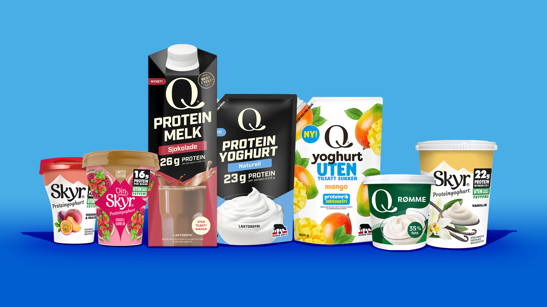 Når Q-Meieriene spør forbrukerne hva de ønsker seg, skjer det store ting i meierihyllen. Fra proteinmelk til Skyr® Vanilje i stort beger – Q har lyttet, testet og utviklet produkter som du snart kan finne i butikkhyller i det ganske land.