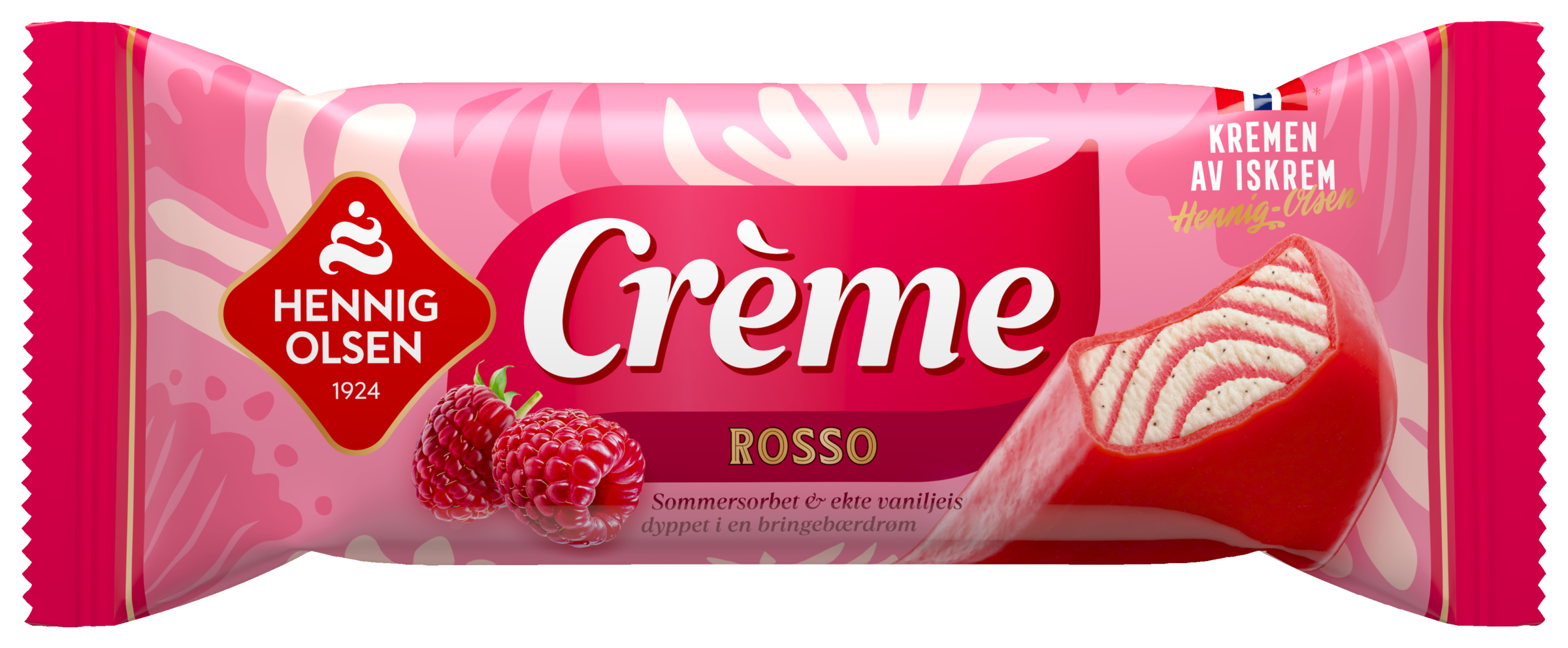 En sommerklassiker er født! Crème Rosso byr på en perfekt kombinasjon av fløyelsmyk vaniljeis og frisk sommersorbet, overtrukket med et kraftig rødt frukttrekk. Den perfekte avkjølingen i sommervarmen!