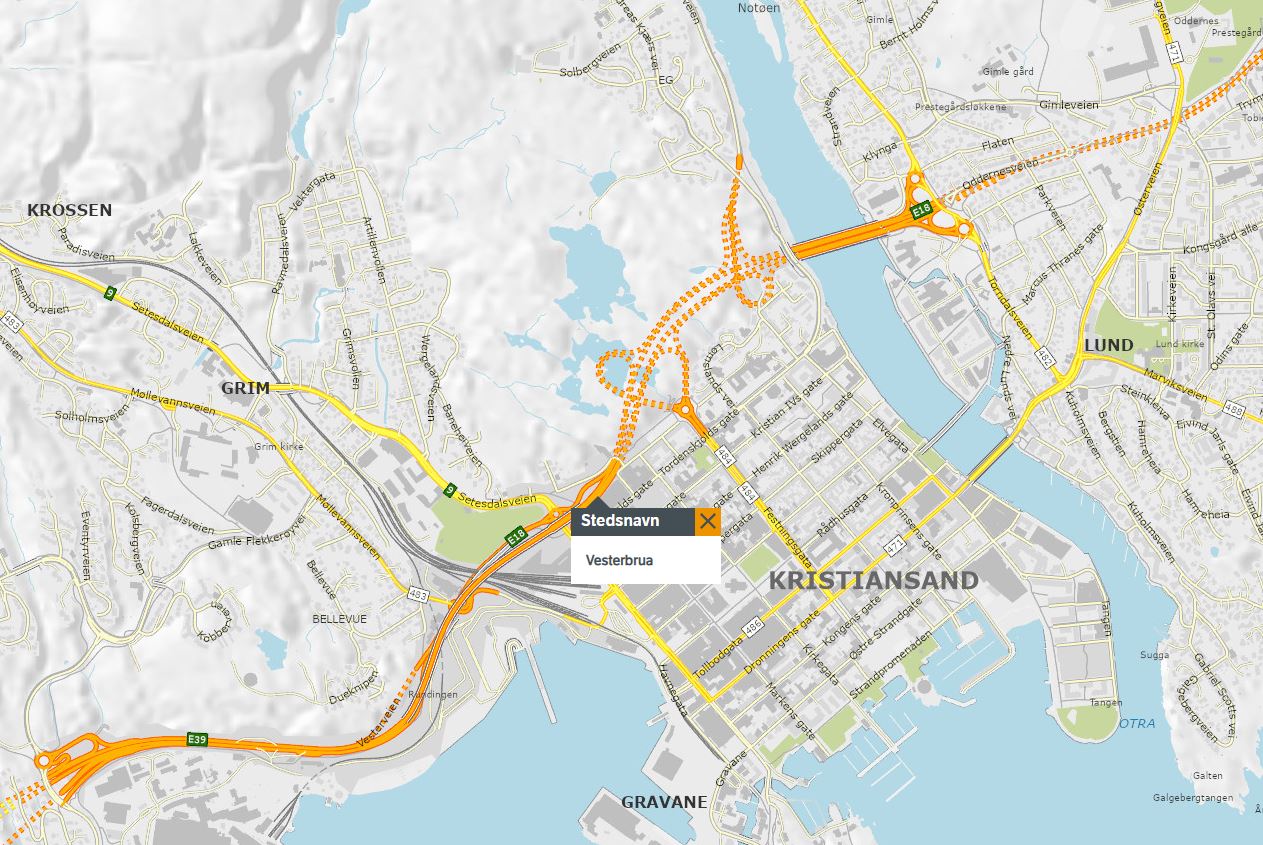Nattestenging av E18 Vesterbrua i Kristiansand i helga