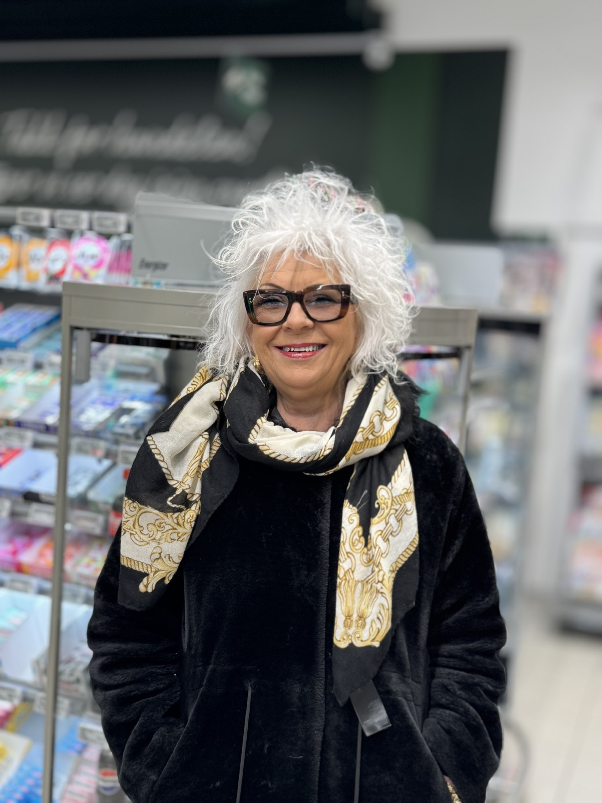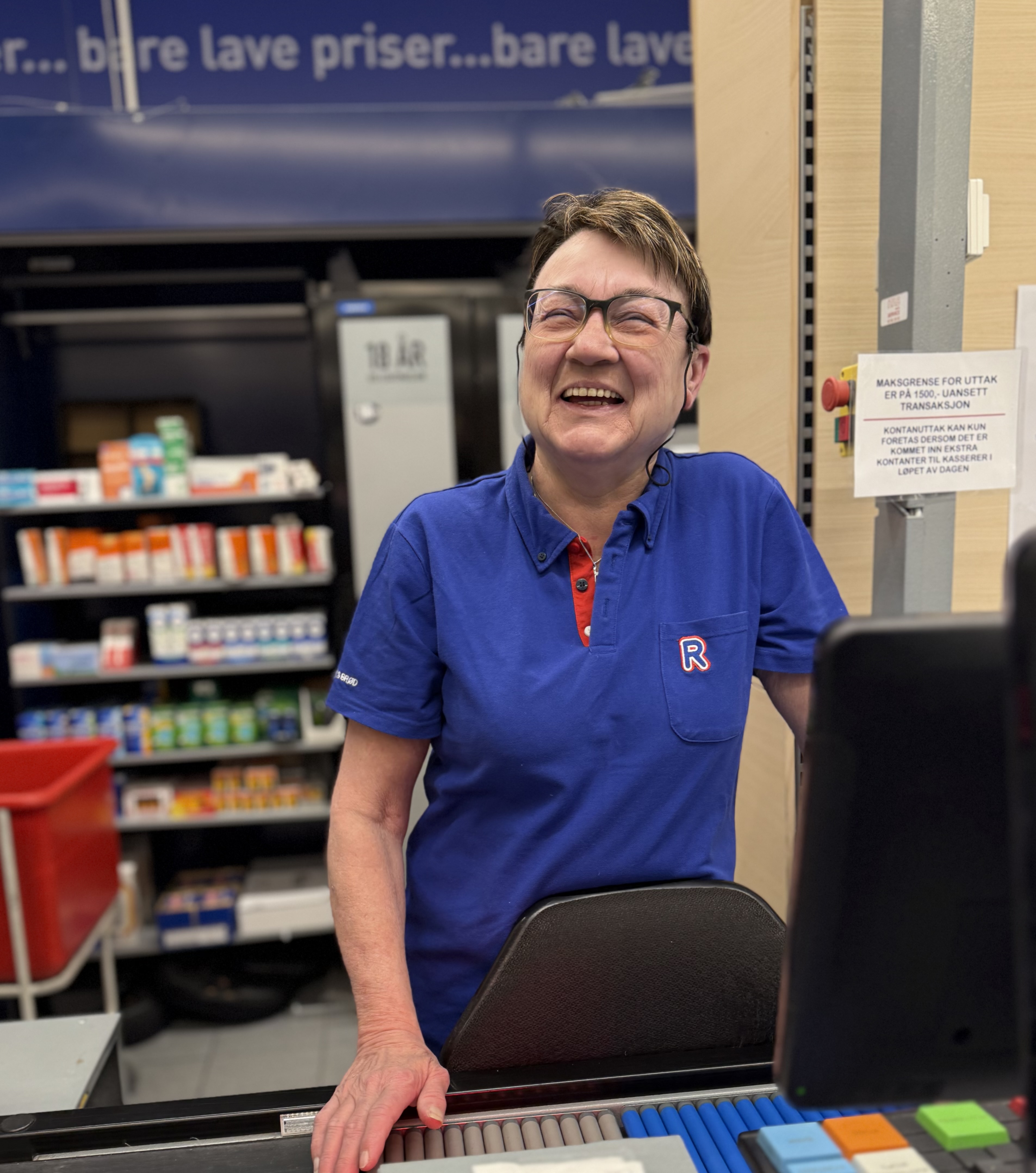 En kollega sier: Hun er en LIV-redder, som har reddet mange fra å ha en dårlig dag. Ikke minst er hun urokkelig i sin tålmodighet og gir butikken et godt ansikt utad.