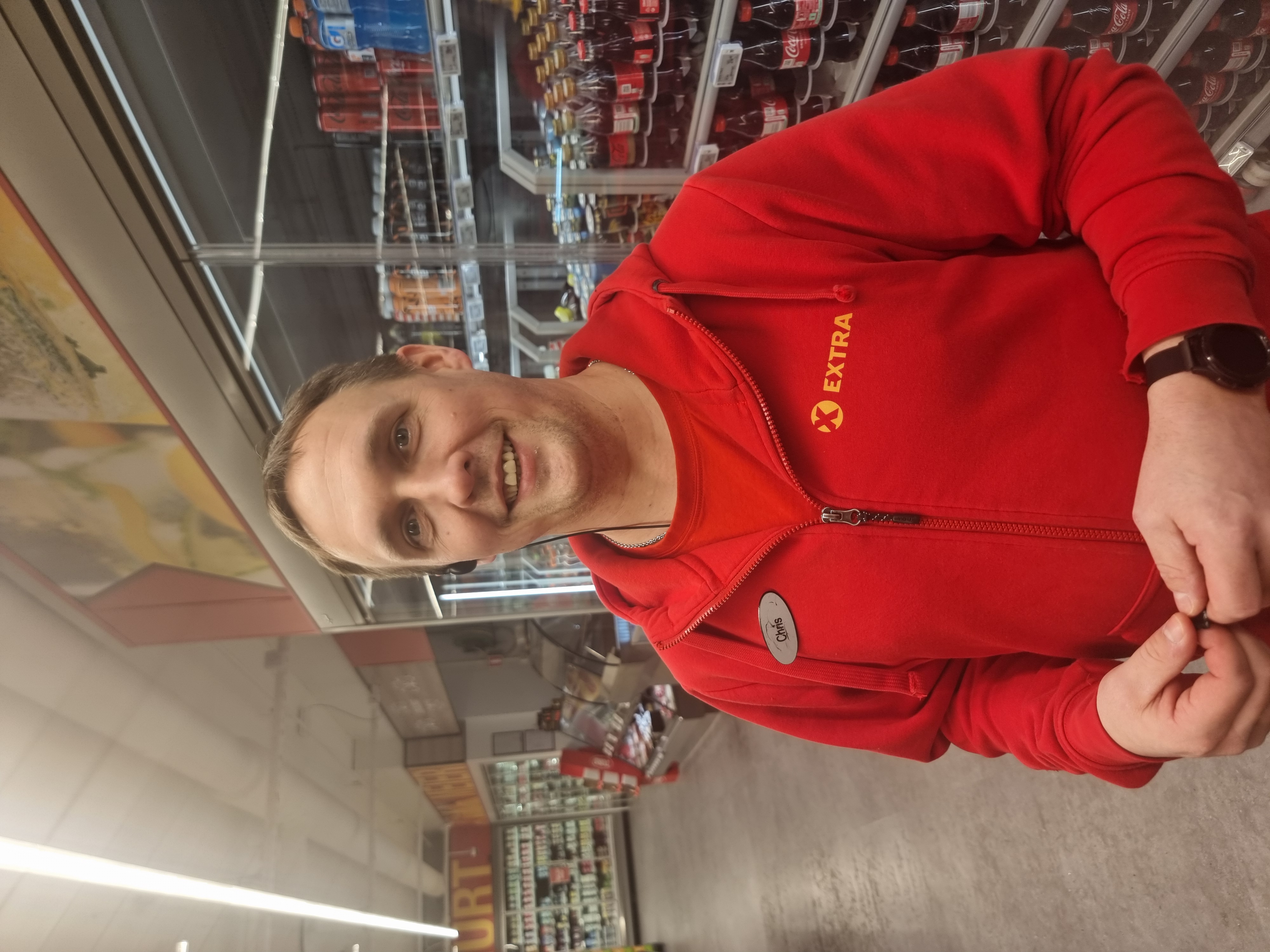 Butikksjef Jonas Kvitnes sier: Chris er «en jæving», som vi sier her nord. Det betyr at han er gull verdt. Han gir alt, og kundene er kjempeglade i han. Jeg har bare fine ting å si. Vi er heldige, som har han hos oss! Skulle gjerne hatt mange flere med alle hans flotte egenskaper.