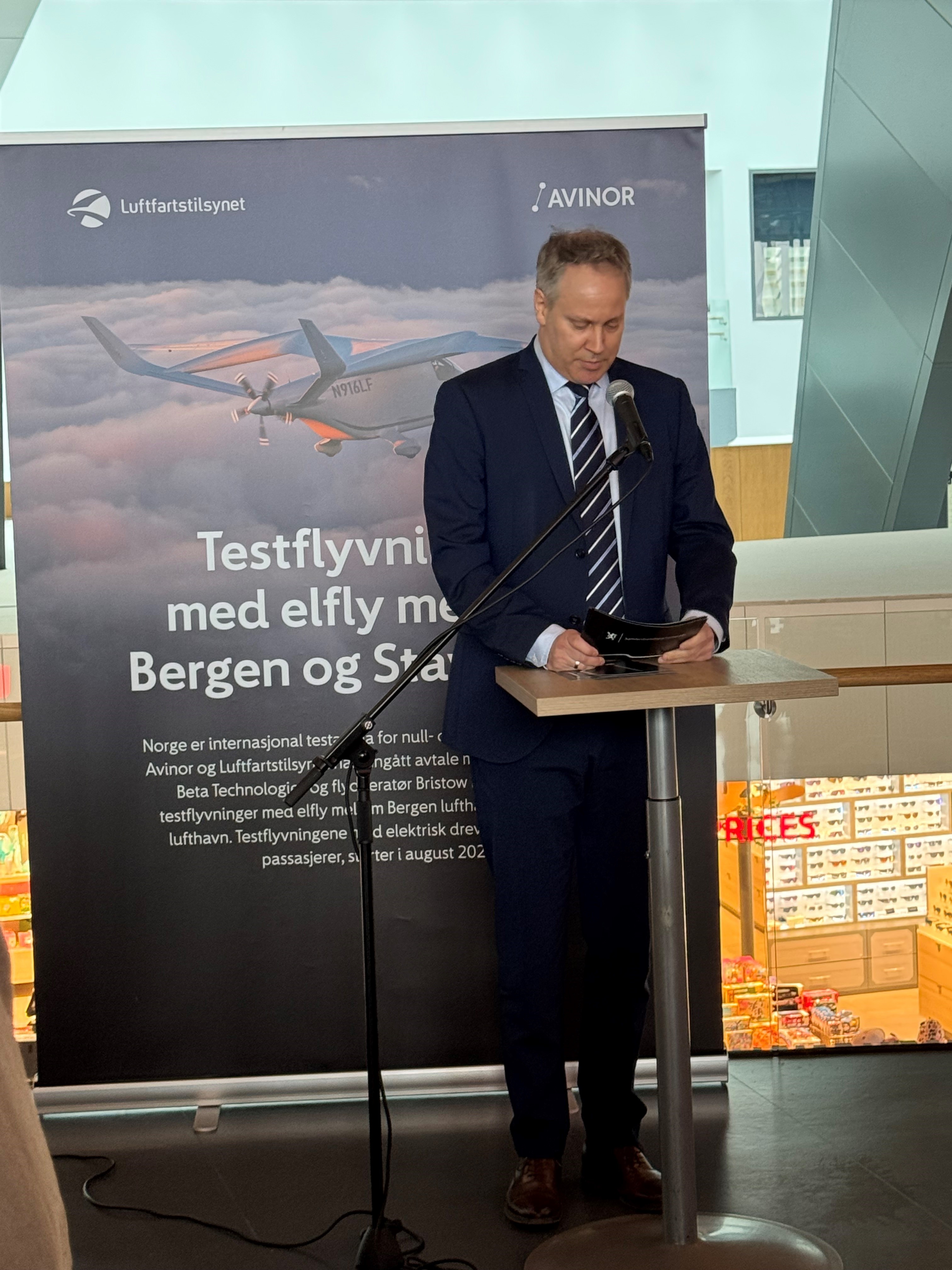 I april i fjor inngikk Avinor og Luftfartstilsynet et samarbeid om å etablere Norge som en internasjonal testarena for null- og lavutslippsluftfart. 4. mars 2025 ble første avtale om testflygninger, med flyprodusenten BETA Technologies og operatøren Bristow Norge, signert på Bergen lufthavn, Flesland.