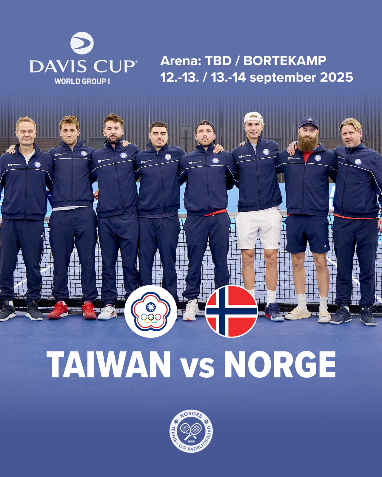 Norge trakk Taiwan i Davis Cup World Group 1. Det betyr at Casper Ruud, Viktor Durasovic, Nicolai Budkov Kjær og resten av det norske tennislandslaget må ut på langtur i september!