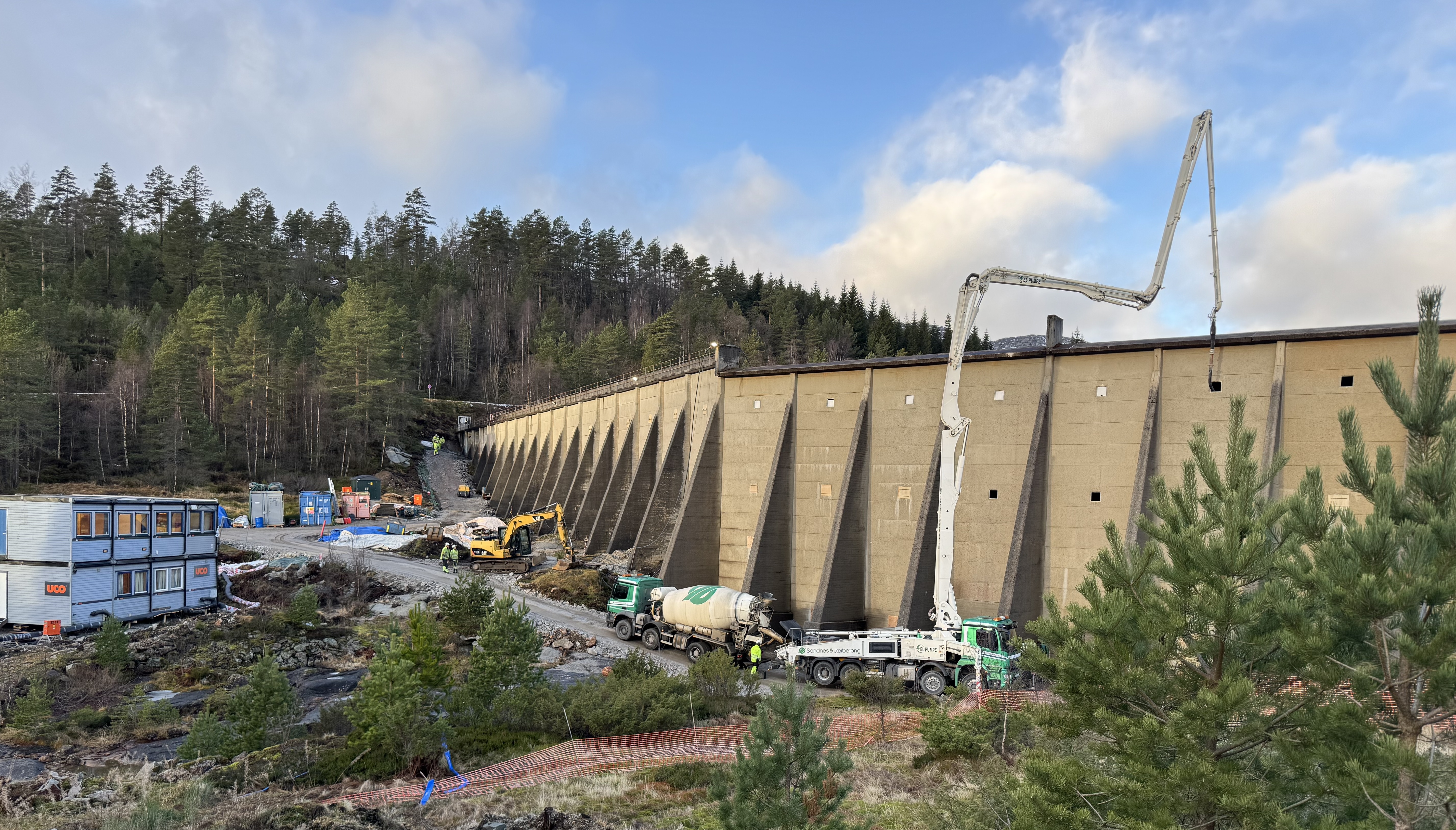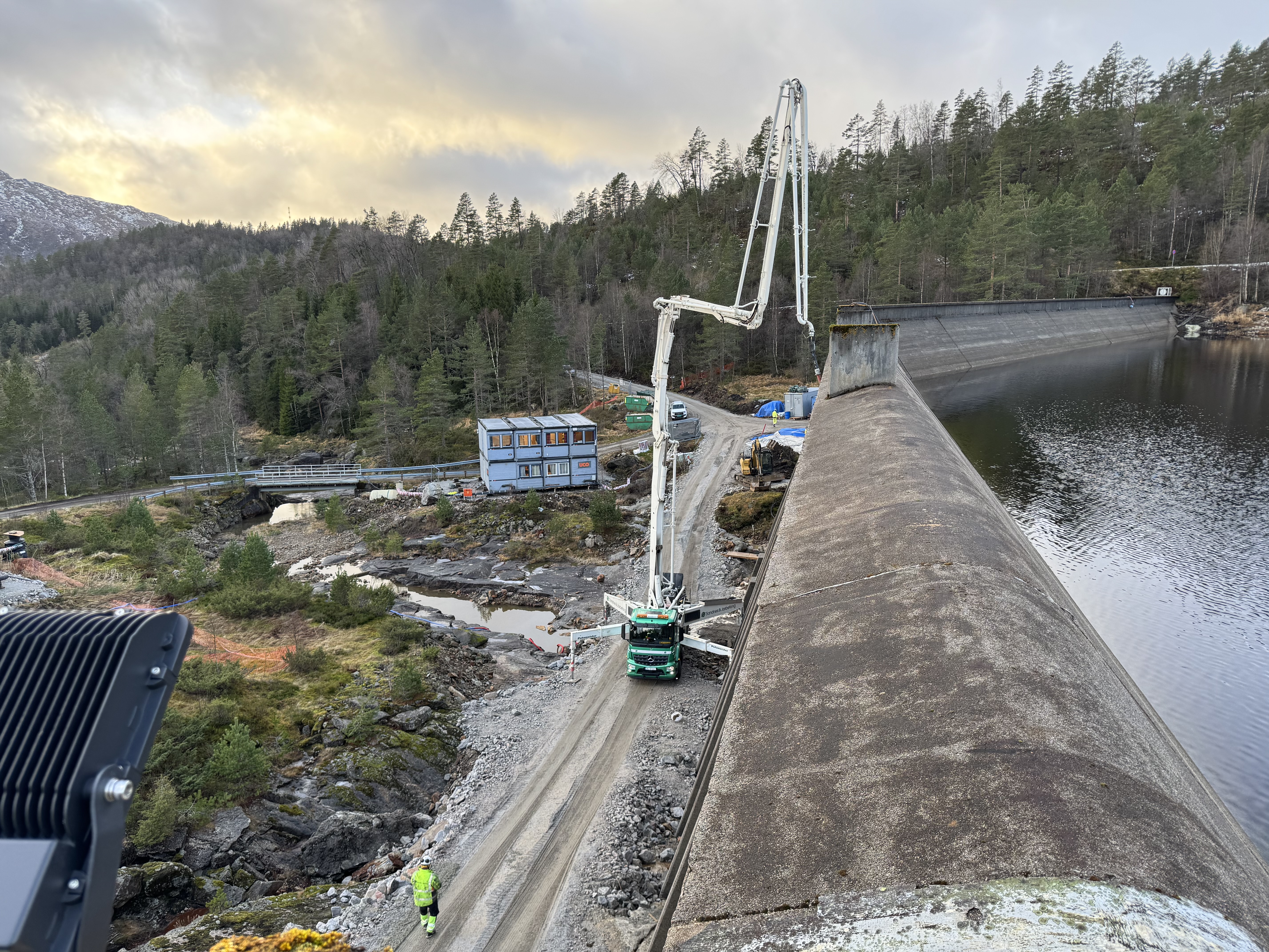 - Vi har imidlertid valgt å bruke lavutslippsbetong i stedet for vanlig betong. Det går ikke utover kvaliteten på det ferdige damanlegget, men CO2-avtrykket i dette prosjektet reduseres fra rundt 3.300 tonn til om lag 2.100 tonn, sier Eldor.
